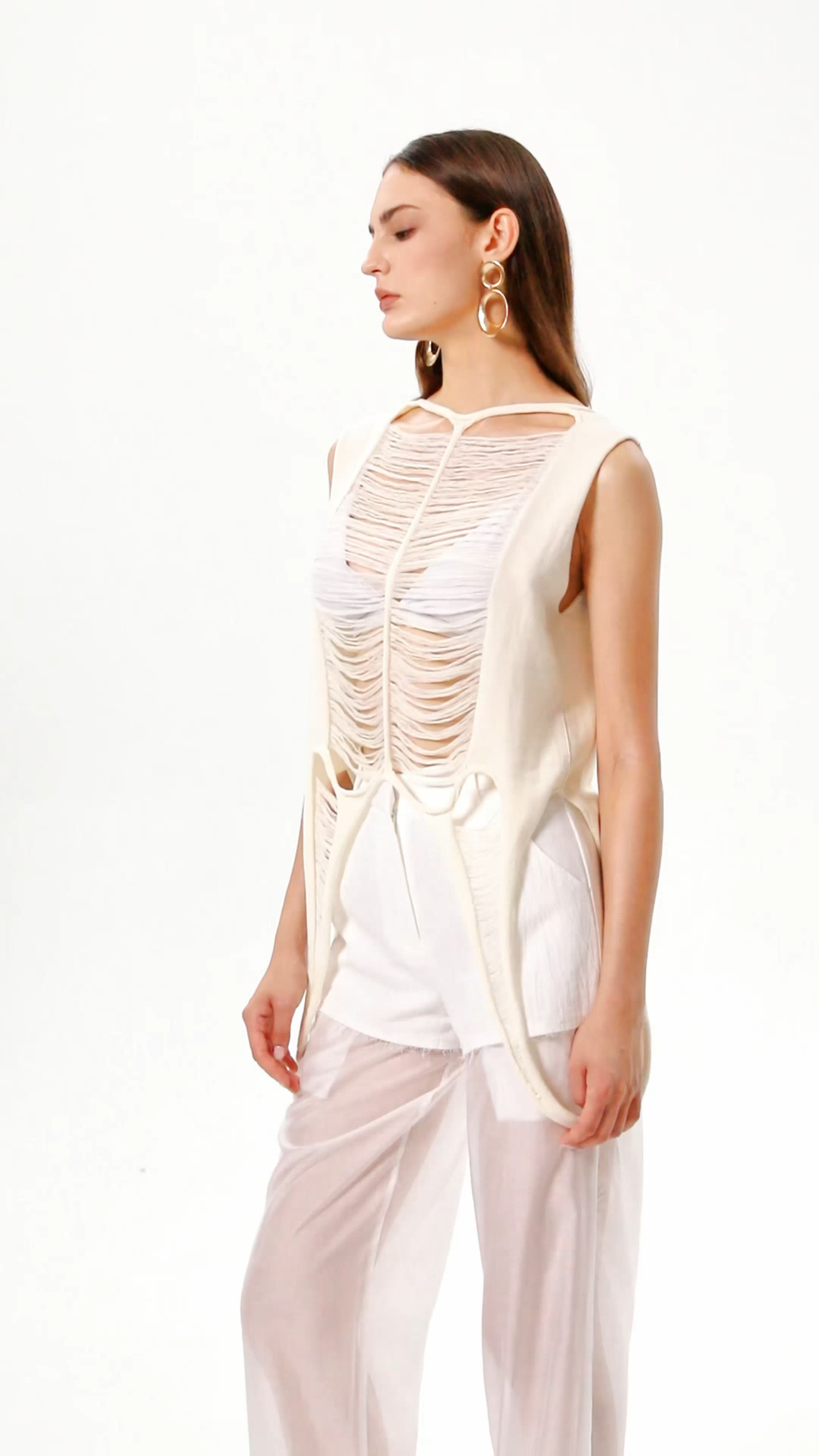 The Chelle Cutout Sleeveless Top offers a sleek, contemporary silhouette with its minimalist design and strategic cutouts. Crafted for both comfort and style, this top enhances breathability while delivering a striking visual detail. Its sleeveless construction allows for ease of movement and layering versatility, making it an excellent choice for sophisticated daytime looks or evening ensembles. Ideal for those seeking a blend of modern edge and refined simplicity.