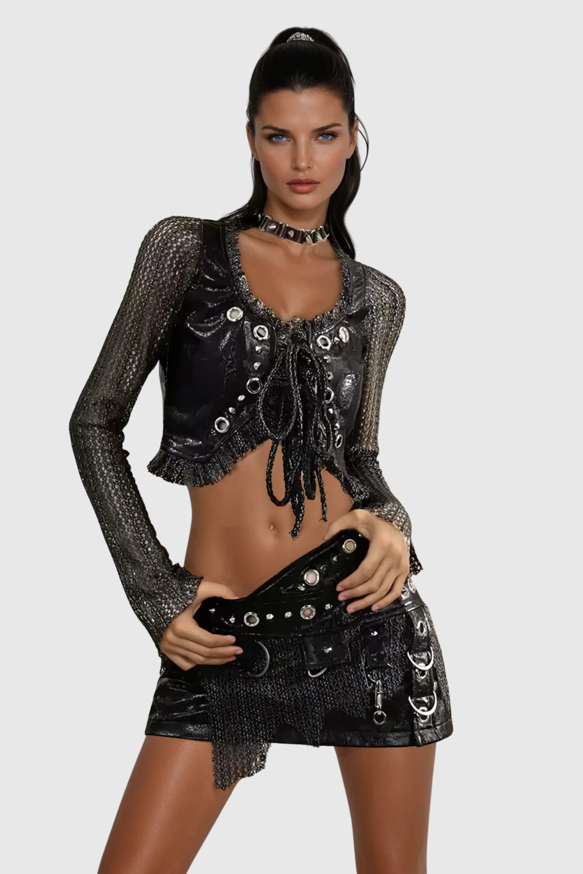 Crafted from premium leather, the Chiaki Embellished Asymmetric Mini Skirt offers a sophisticated edge with its unique asymmetric design and carefully placed embellishments. This skirt combines contemporary style with expert craftsmanship, making it a standout piece for fashion-forward wardrobes. Its tailored fit enhances silhouette definition while the distinctive cut adds dynamic movement, perfect for elevating both casual and evening ensembles.