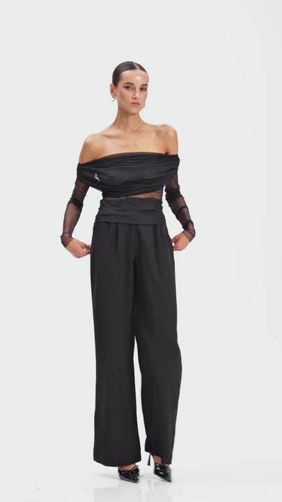 The Clement Off Shoulder Ruched Mesh Top in Black combines sophisticated design with delicate fabric for an elegant look. Its off-shoulder silhouette highlights the neckline while ruched detailing adds texture and shape. Crafted from sheer mesh, this top provides breathable comfort and subtle allure, making it ideal for stylish layering or standout evening wear.