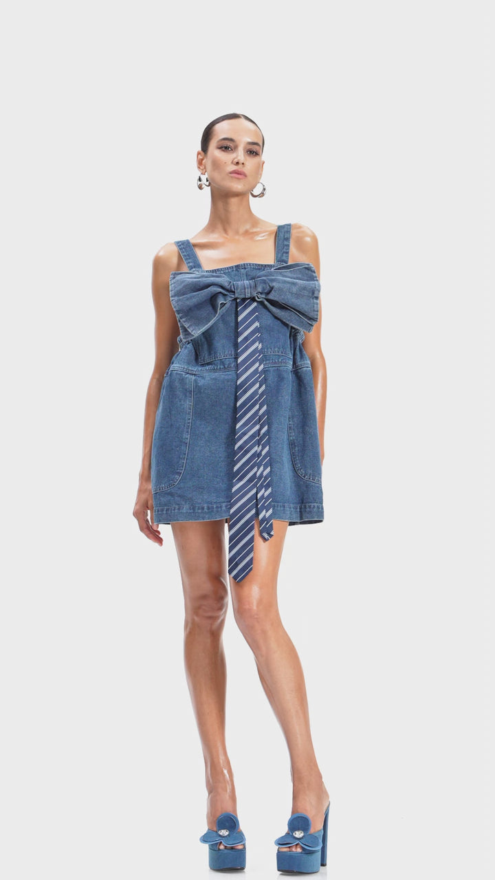 The Clemmie Bow Denim Mini Dress combines classic denim durability with feminine charm. Crafted from high-quality denim, this mini dress features a flattering bow detail that adds a sophisticated touch to your look. Its tailored fit enhances silhouette definition, making it suitable for both casual outings and stylish events. The breathable fabric ensures all-day comfort, while its versatile design allows easy pairing with various accessories and footwear for a polished finish.