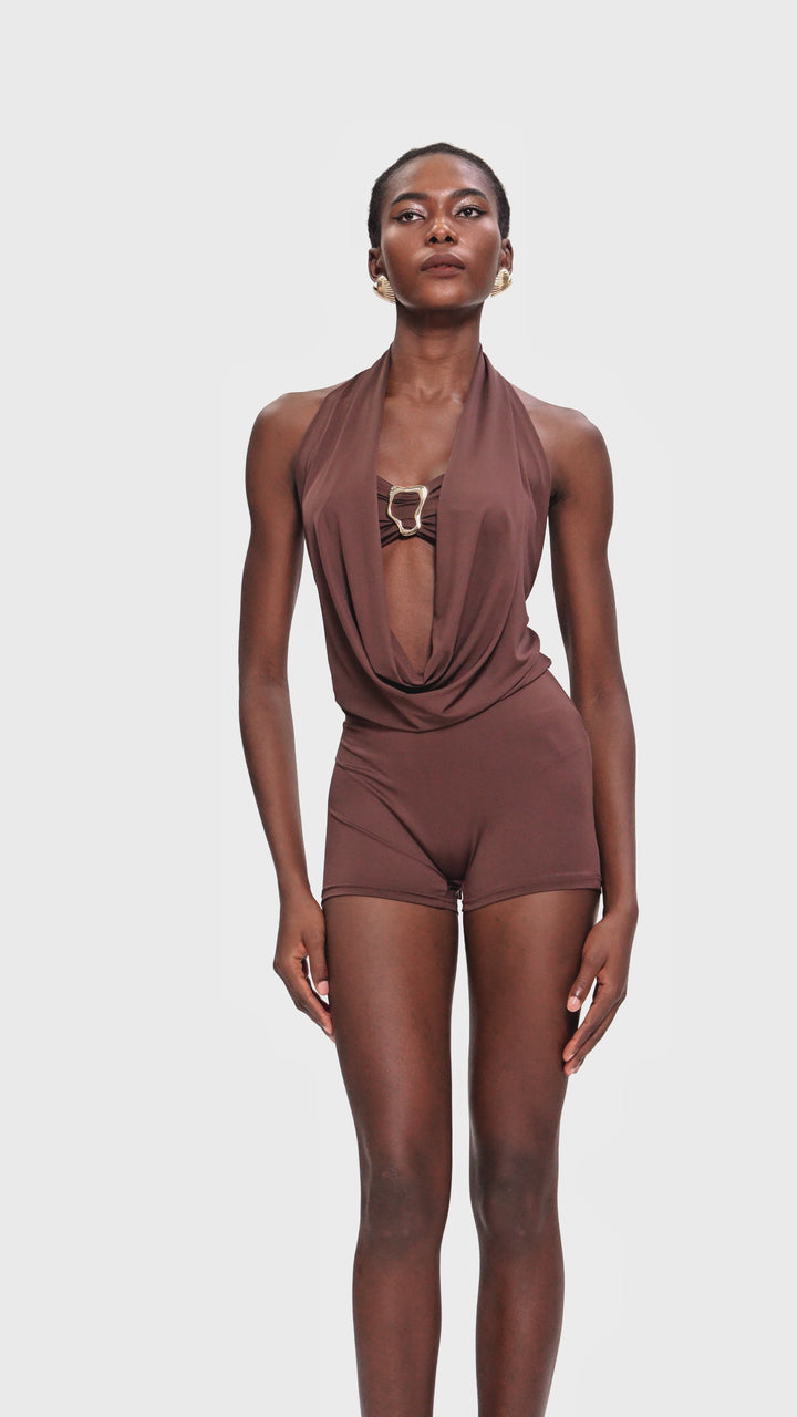 The Comhghall Cowl Neck Pants Set in Brown offers a sophisticated blend of modern design and comfort. Featuring a gracefully draped cowl neck top paired with tailored pants, this set is crafted to provide a flattering silhouette and ease of movement. The warm brown tone ensures versatility for both professional and casual settings, making it a reliable choice for those seeking refined elegance with effortless style.