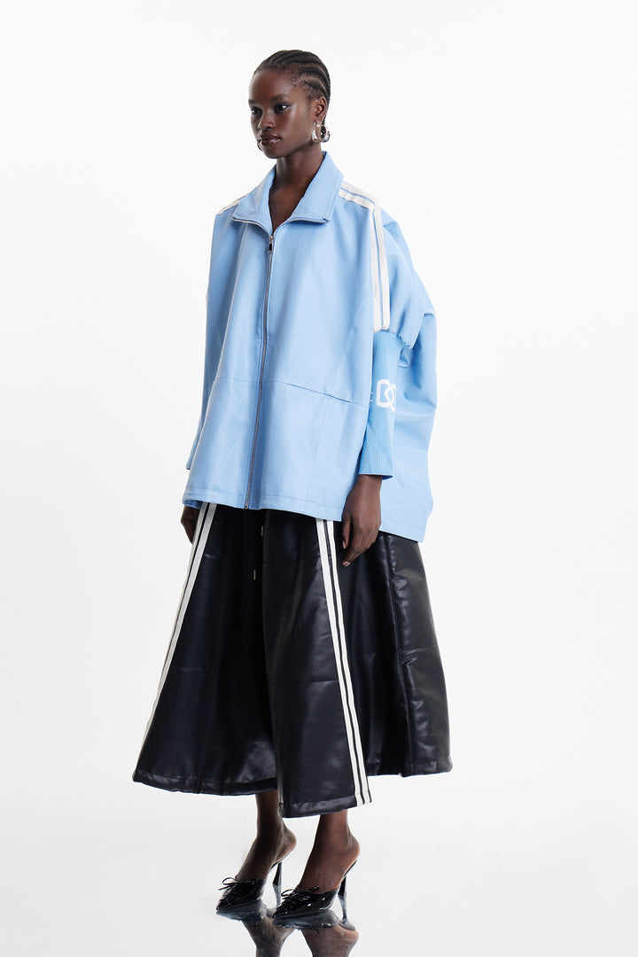 The Condoleezza Stripe Leather Jacket in Blue delivers understated elegance through superior materials and design. Constructed from genuine leather, this jacket showcases refined striping that adds textural interest without compromising sophistication. The deep blue shade provides a versatile foundation for layering, working seamlessly with both minimalist and bold styling approaches. The precision-tailored fit ensures a flattering drape across various body types. Engineered for longevity, this piece represents a smart investment in quality outerwear that transcends seasonal trends and maintains its appeal year after year.