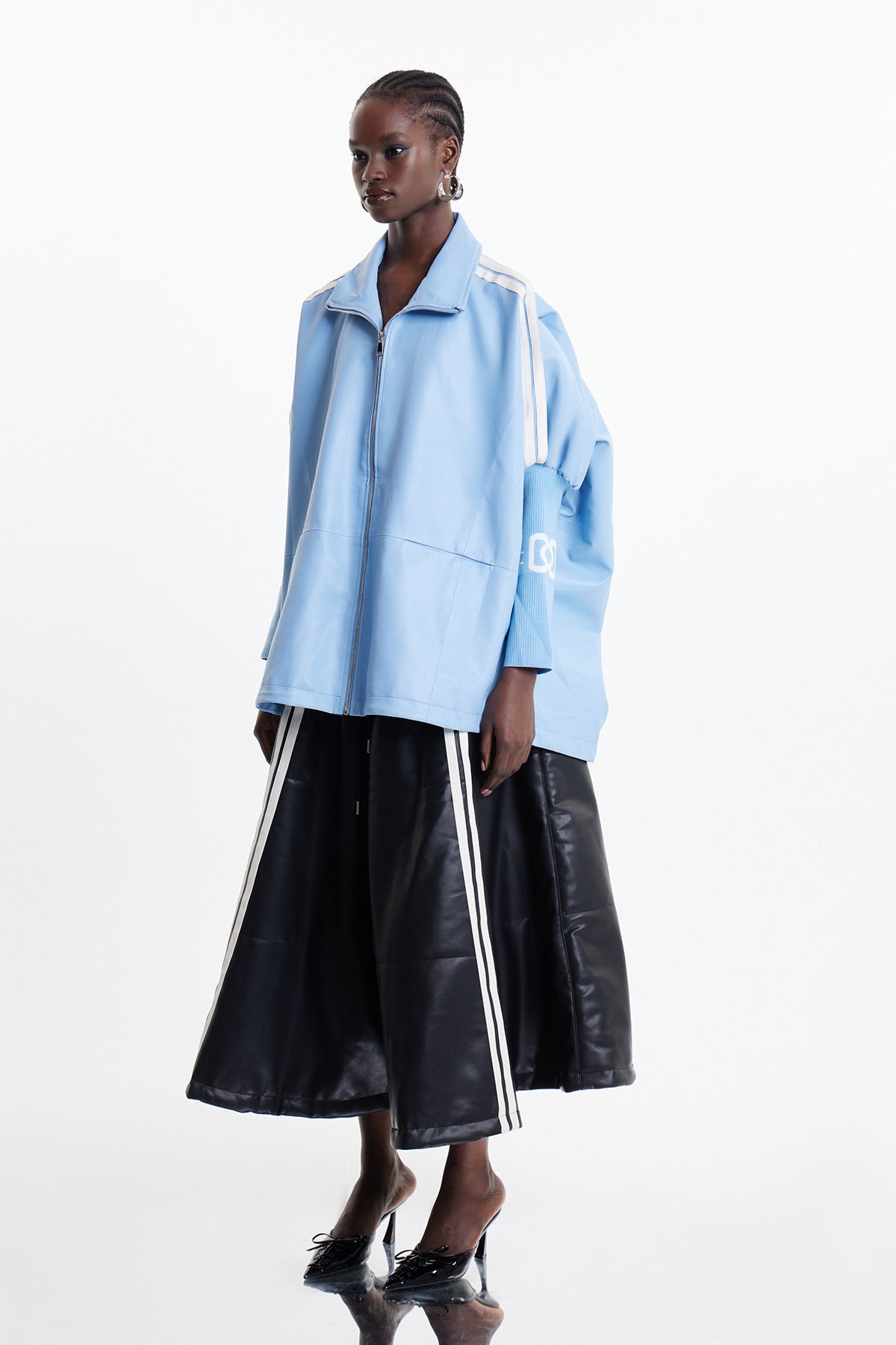 The Condoleezza Stripe Leather Jacket in Blue delivers understated elegance through superior materials and design. Constructed from genuine leather, this jacket showcases refined striping that adds textural interest without compromising sophistication. The deep blue shade provides a versatile foundation for layering, working seamlessly with both minimalist and bold styling approaches. The precision-tailored fit ensures a flattering drape across various body types. Engineered for longevity, this piece represents a smart investment in quality outerwear that transcends seasonal trends and maintains its appeal year after year.