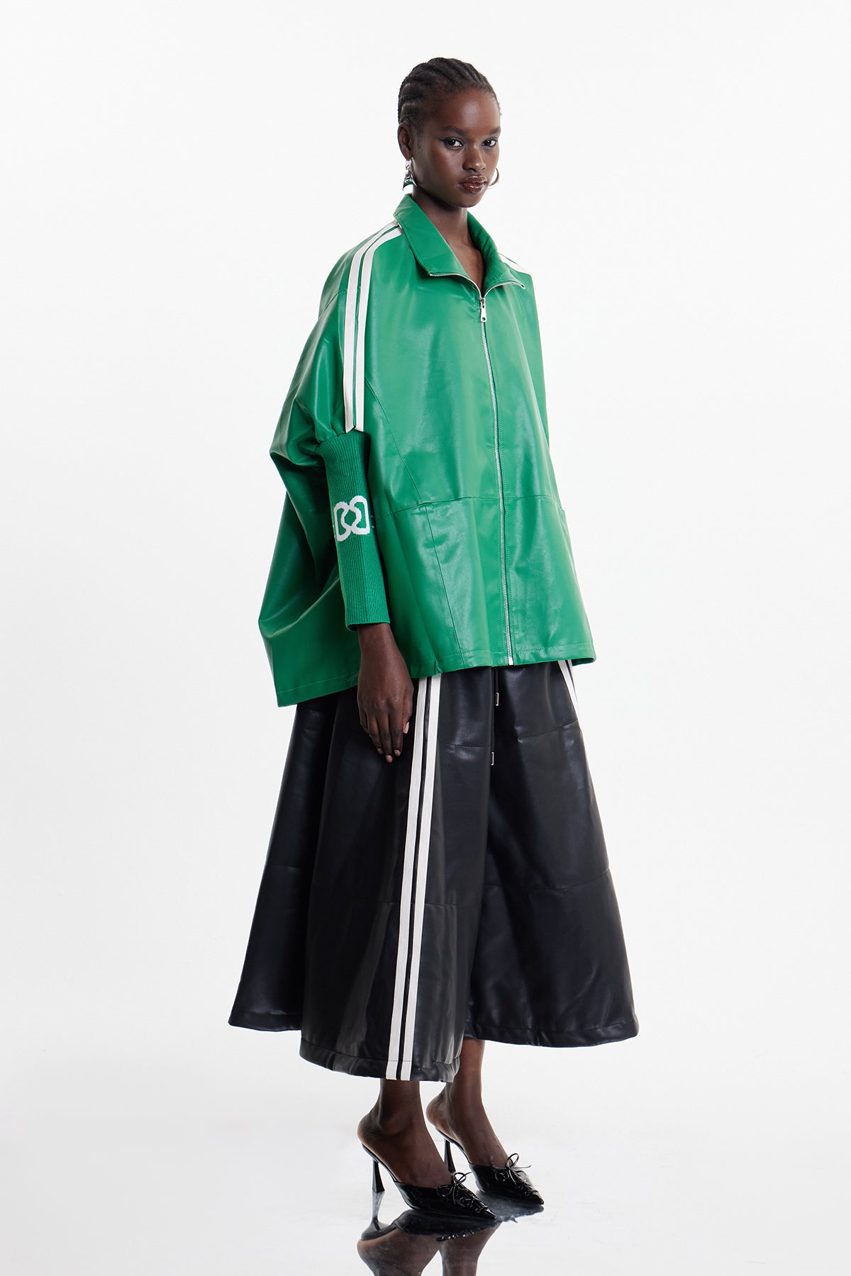 The Condoleezza Stripe Leather Jacket in Green showcases refined craftsmanship with a sophisticated color palette. This premium leather jacket features signature striping details that create visual depth and movement. The tailored cut provides a polished silhouette suitable for both professional and casual settings. The verdant green tone offers versatility, pairing effortlessly with neutral basics or complementary jewel tones. Built to withstand years of wear, this investment piece delivers timeless style with exceptional quality construction and attention to detail.