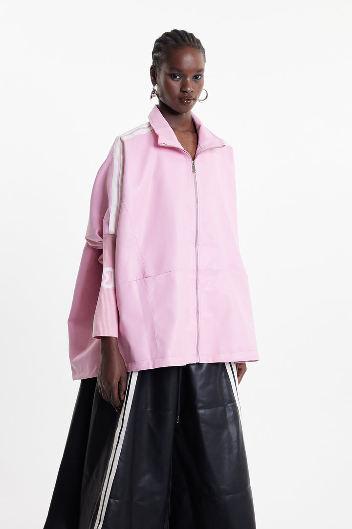 The Condoleezza Stripe Leather Jacket in Pink presents a bold departure from conventional outerwear. Rendered in premium leather with distinctive striping throughout, this jacket commands attention while maintaining refined proportions. The striking pink colorway offers a confident statement piece that elevates everyday ensembles and adds personality to formal occasions. The expertly constructed silhouette provides structure and comfort, adapting to layering needs across different seasons. This durable investment piece combines artistic vision with practical wearability, making it an essential addition for those seeking distinctive style backed by superior craftsmanship.