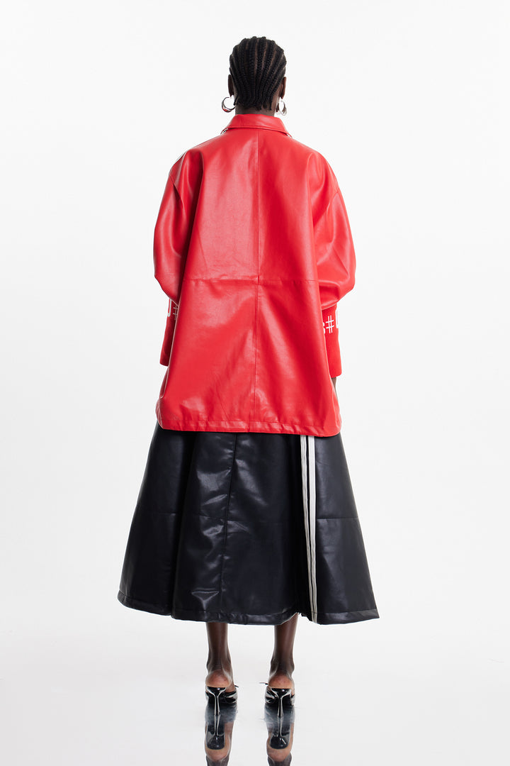 The Condoleezza Stripe Leather Jacket in Red combines classic tailoring with contemporary edge. Crafted from premium leather, this statement piece features distinctive striping that adds visual interest and dimension. The structured silhouette flatters multiple body types while the rich red hue makes an undeniable impression. Perfect for elevating casual outfits or adding sophistication to evening wear, this jacket transitions seamlessly across seasons. Quality construction ensures durability and longevity, making it a worthwhile investment for any discerning wardrobe.