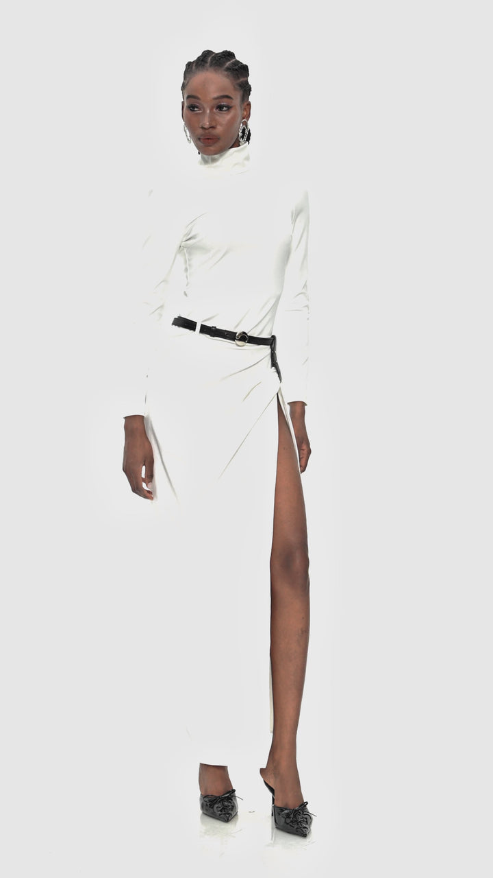 The Cree Long Sleeve Ruch Split Maxi Dress combines elegance with subtle allure. Crafted with delicate ruching along the silhouette, it flatters the body while the thigh-high split adds movement and sophistication. Its long sleeves provide coverage without sacrificing style, making it ideal for both formal occasions and refined casual settings. This dress ensures a timeless, confident look with every wear.