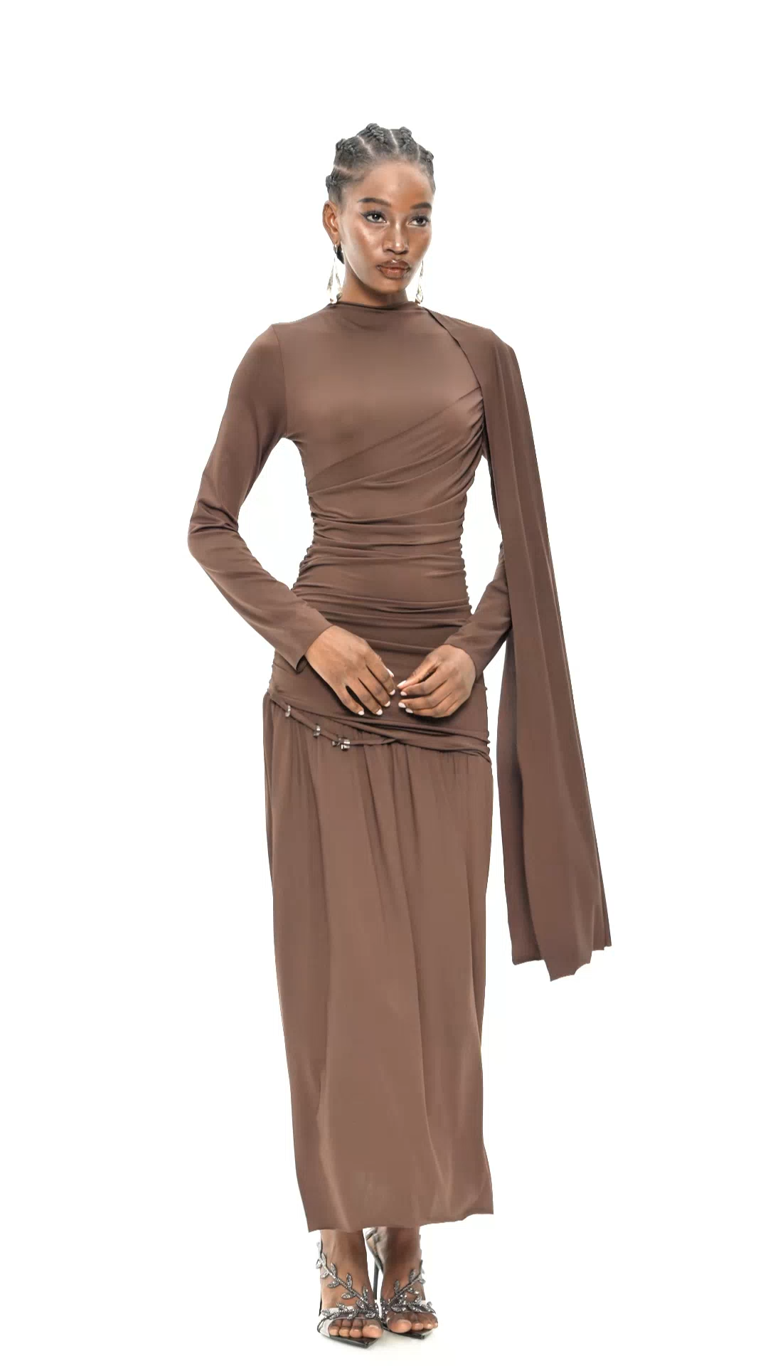 The Cristian Shawl Ruch Maxi Dress offers an elegant silhouette crafted with intricate ruching that accentuates the waist for a flattering fit. Its shawl-style neckline adds a refined touch, making it ideal for formal events or sophisticated gatherings. Designed to flow gracefully, this maxi dress combines comfort with a polished appearance, ensuring confidence in every step. Perfect for those seeking timeless style with expert tailoring details.