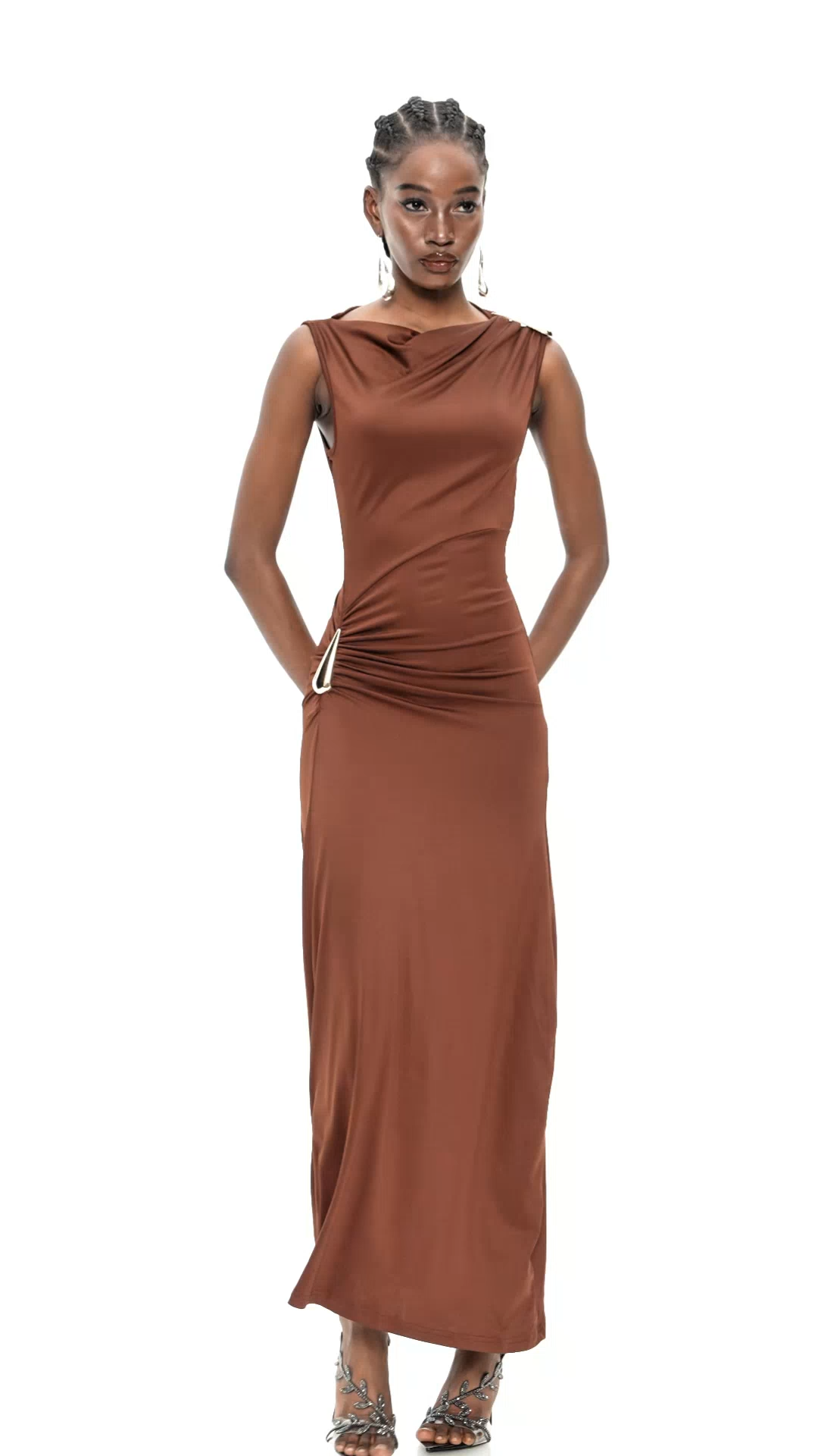 The Cristiano Sleeveless Ruch Maxi Dress features a sophisticated design with delicate ruching that enhances silhouette definition. Crafted for elegance and comfort, its sleeveless cut and flowing maxi length offer a versatile choice for formal occasions or stylish daytime events. This dress combines flattering fit with effortless grace, perfect for those seeking a refined yet contemporary look.
