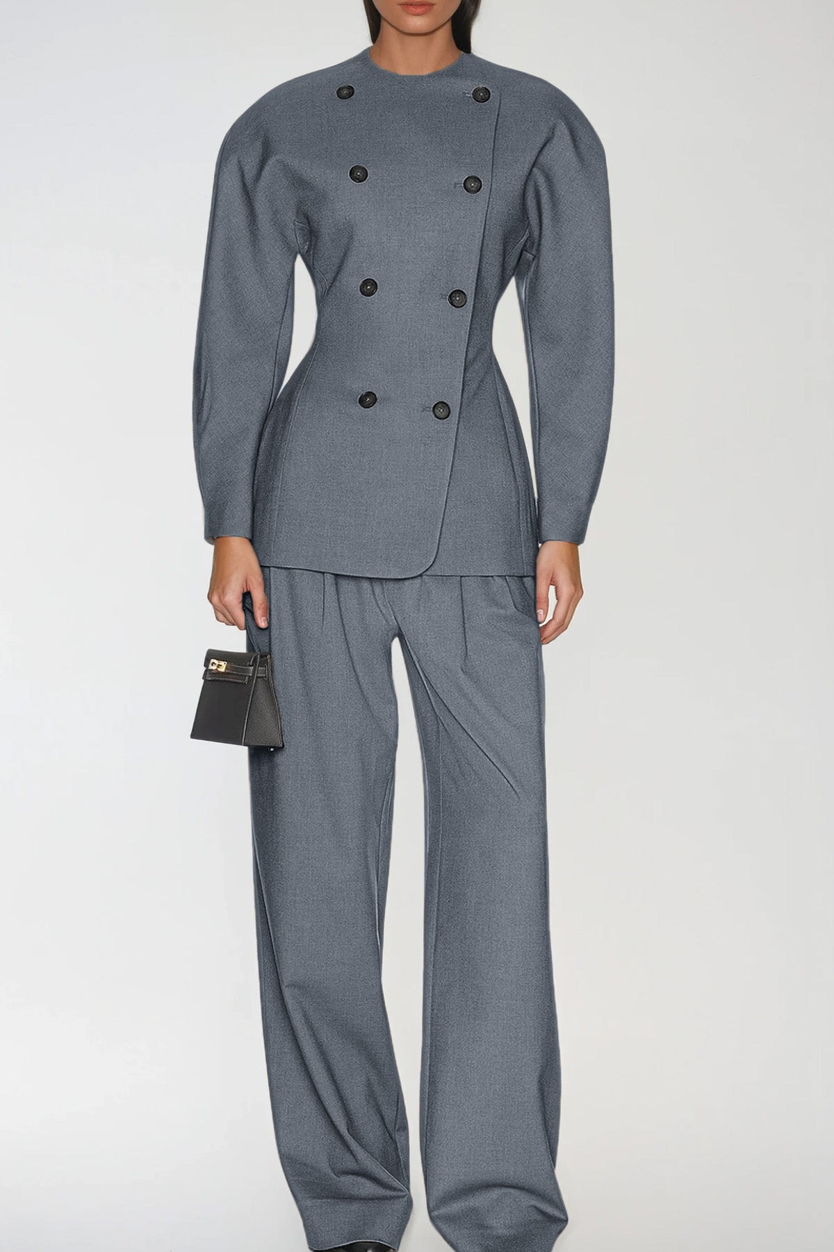 The Danila Double Breasted Pants Set offers a refined, structured silhouette with its double-breasted jacket and tailored pants. Expertly designed for a polished look, this set combines classic tailoring with modern sophistication, making it ideal for professional settings or upscale events. The balanced fit enhances confidence and sharpness, delivering both comfort and style in one versatile ensemble.