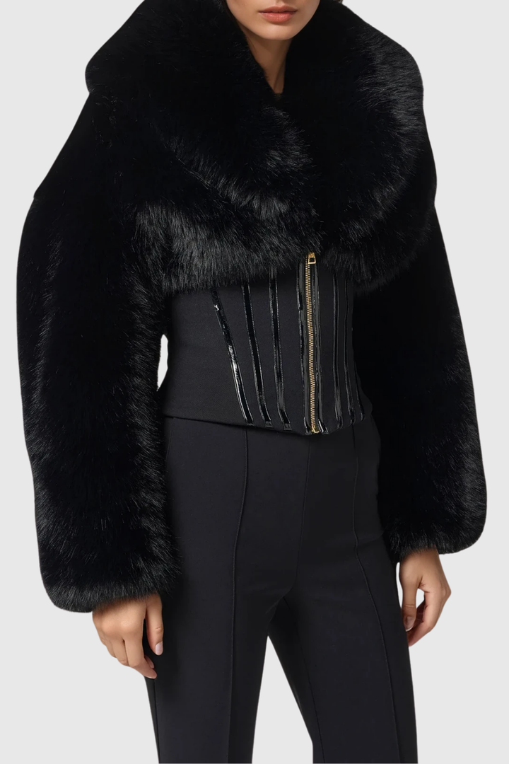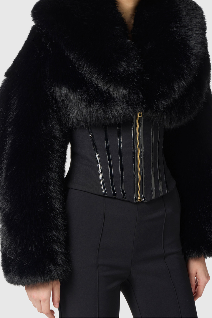 Elevate your outerwear with the Davin Lapel Corset Faux Fur Jacket, combining luxurious softness with structured style. This jacket features a sleek lapel design paired with a flattering corset silhouette that enhances your shape while providing warmth and comfort. Crafted from high-quality faux fur, it offers an ethical alternative without compromising on elegance or durability. Ideal for sophisticated layering, this piece brings a refined edge to both casual and formal ensembles.
