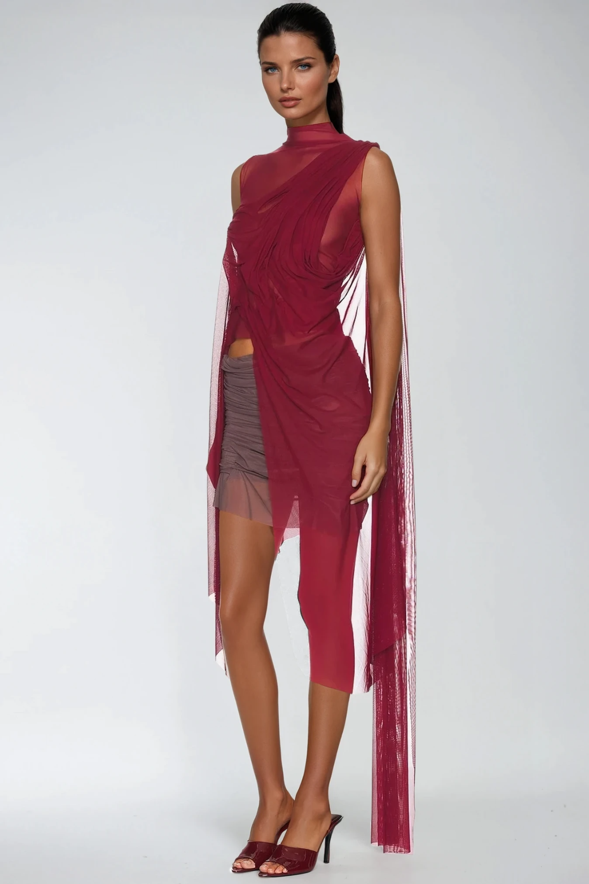 The Davion Mesh Asymmetric Fringe Top combines contemporary design with refined craftsmanship. Featuring sheer mesh construction and an asymmetrical silhouette, this piece delivers modern sophistication with textured fringe detailing that adds movement and visual interest. The strategic draping creates a flattering, dynamic look suitable for elevated casual wear or evening occasions. Versatile enough to layer or wear as a statement piece, this top showcases quality construction and attention to detail that discerning customers will appreciate.
