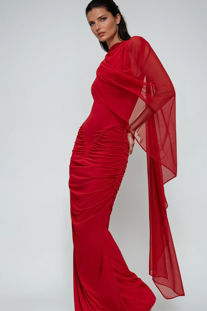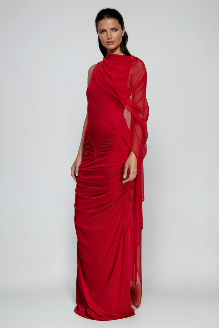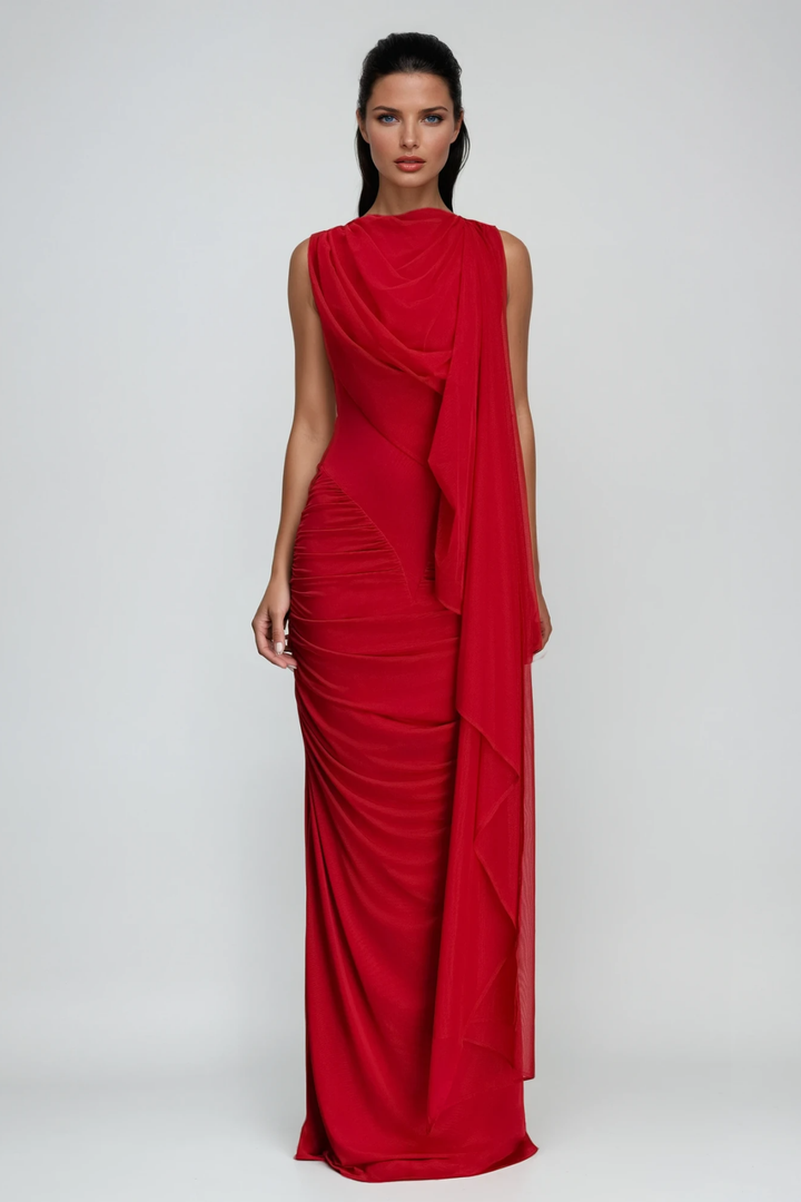 Expertly designed, the Deb Ruch Mesh Shawl Maxi Dress in Red combines elegance with a modern edge. Crafted from delicate mesh fabric, it creates a striking silhouette that drapes beautifully for a graceful flow. The shawl detail adds sophistication, making it an ideal choice for upscale events or evening occasions. This dress offers a flattering fit that enhances your natural shape while ensuring comfort throughout wear. Perfect for those who appreciate refined style with a distinctive touch.