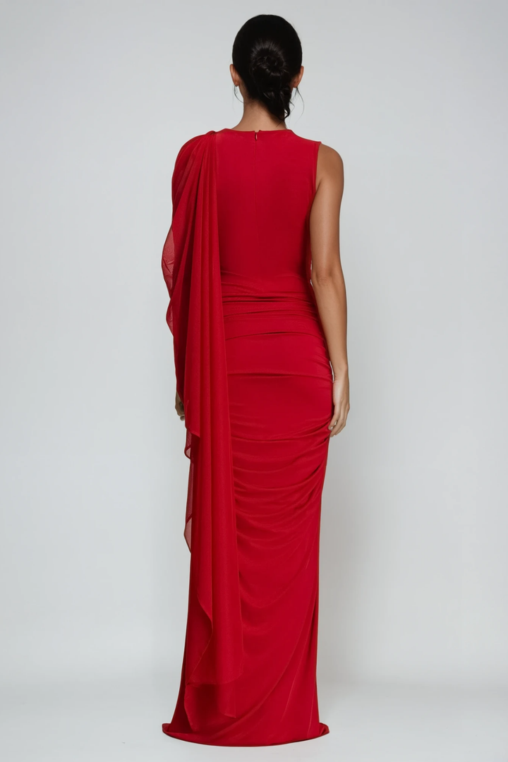 Deb Ruch Mesh Shawl Maxi Dress In Red