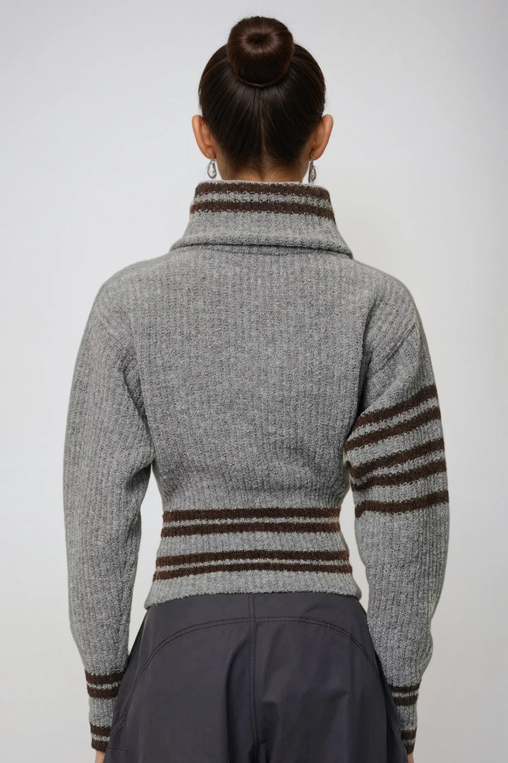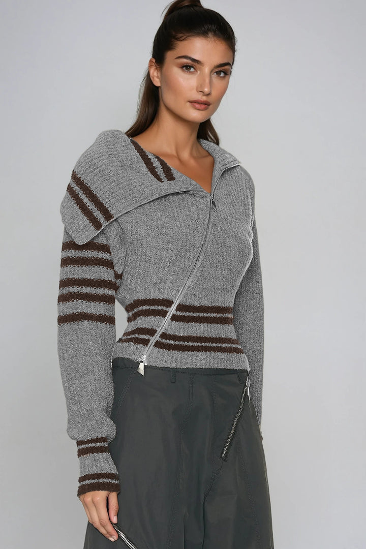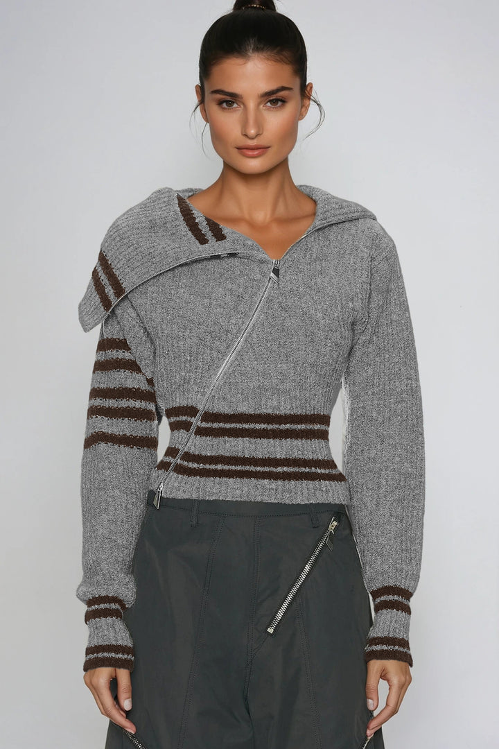 The Deianira Zipper Asymmetric Knit Top blends modern design with expert tailoring, featuring an asymmetric silhouette enhanced by a functional zipper detail. Crafted from a high-quality knit fabric, it offers both comfort and structure, making it ideal for layering or standalone wear. This top effortlessly elevates any wardrobe, providing a sophisticated edge with its unique cut and precise finish. Perfect for those seeking a contemporary yet refined style statement.