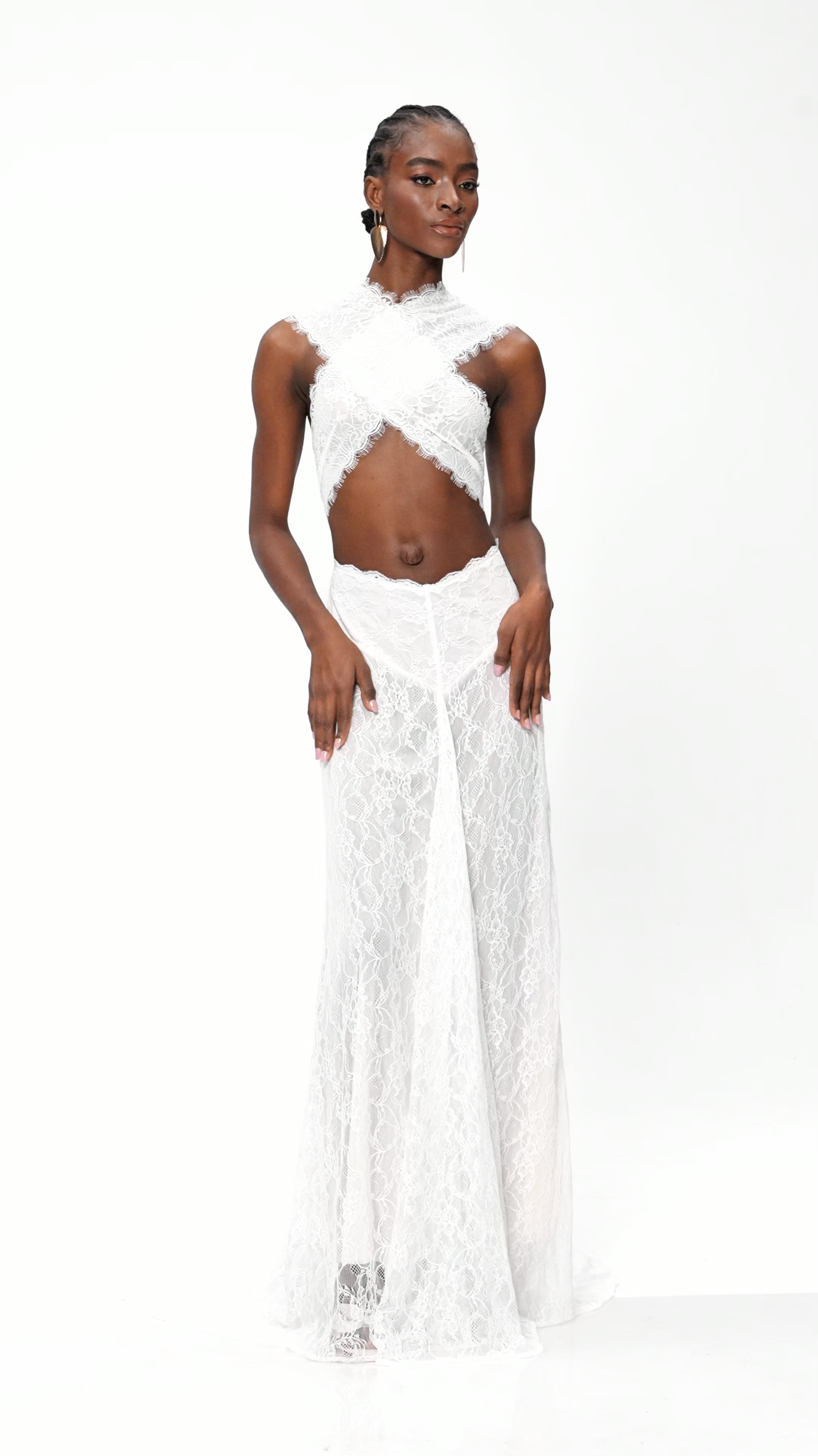 Elevate your wardrobe with the Demid Sleeveless Cutout Lace Maxi Dress. Crafted with intricate lace and stylish cutout details, this elegant sleeveless dress offers a timeless silhouette, perfect for special occasions or sophisticated evening events.