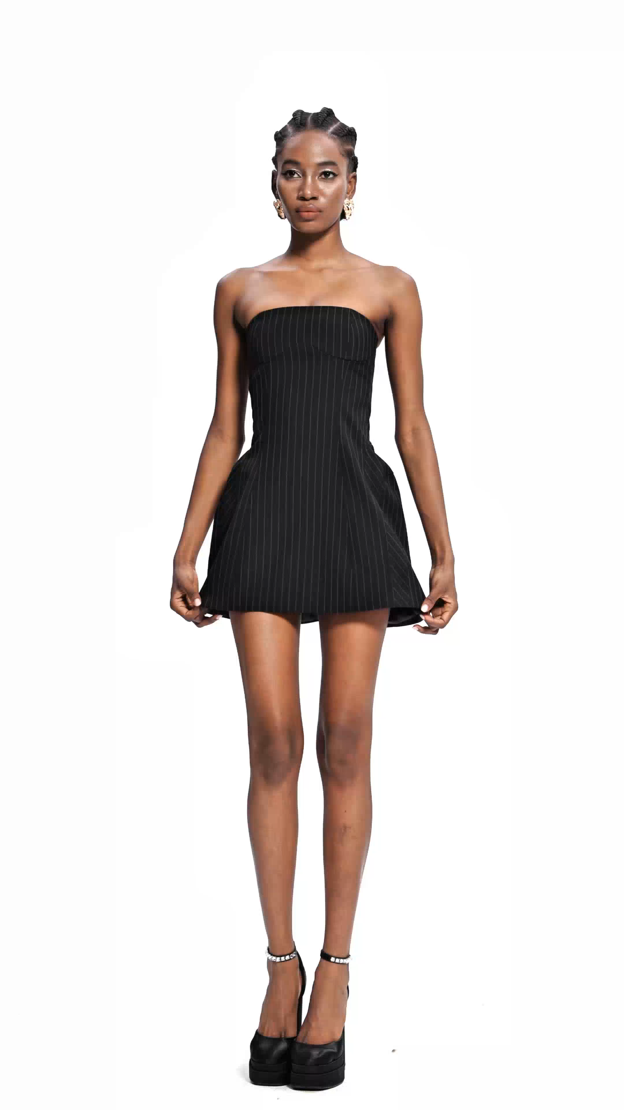 The Demophon Strapless Stripe Mini Dress offers a sleek, modern silhouette with its strapless design and bold stripe pattern. Crafted to enhance your figure, this mini dress combines a flattering fit with a contemporary edge, making it ideal for upscale events or stylish evenings out. Its clean lines and structured form ensure both comfort and confidence, elevating your wardrobe with a versatile piece that stands out effortlessly.
