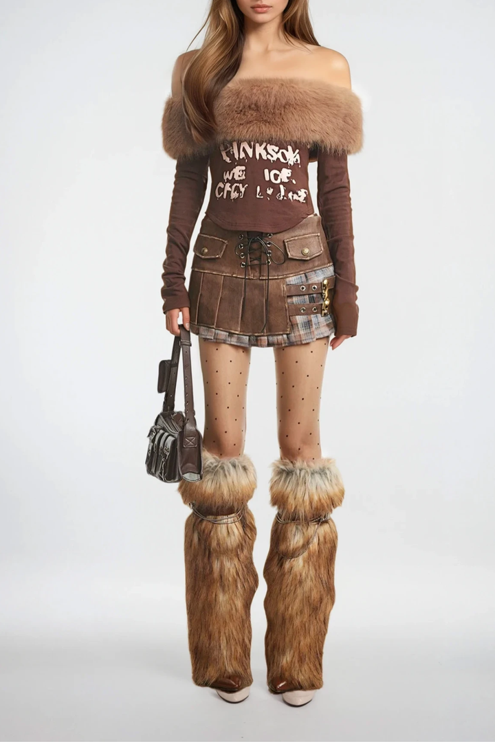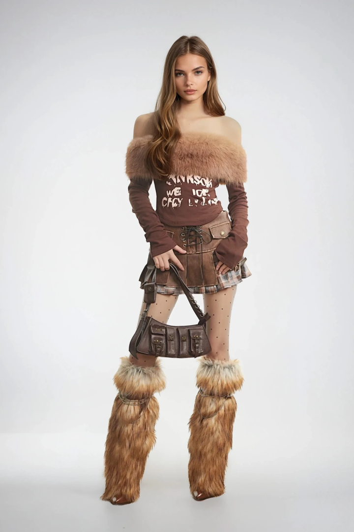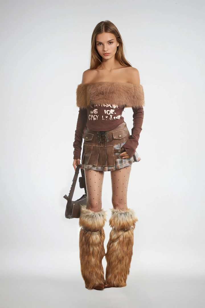 Detlef Faux Fur Off Shoulder Print Top This striking off-shoulder top combines luxurious faux fur trim with bold print detailing for an elevated statement piece. The faux fur accents frame the neckline beautifully while maintaining a cruelty-free approach to luxury styling. The print design adds visual interest and versatility, making it suitable for both casual outings and evening occasions. The off-shoulder silhouette creates a flattering, contemporary look that works across multiple seasons. Perfect for those seeking to add dimension and texture to their wardrobe with a piece that balances sophistication and edge.