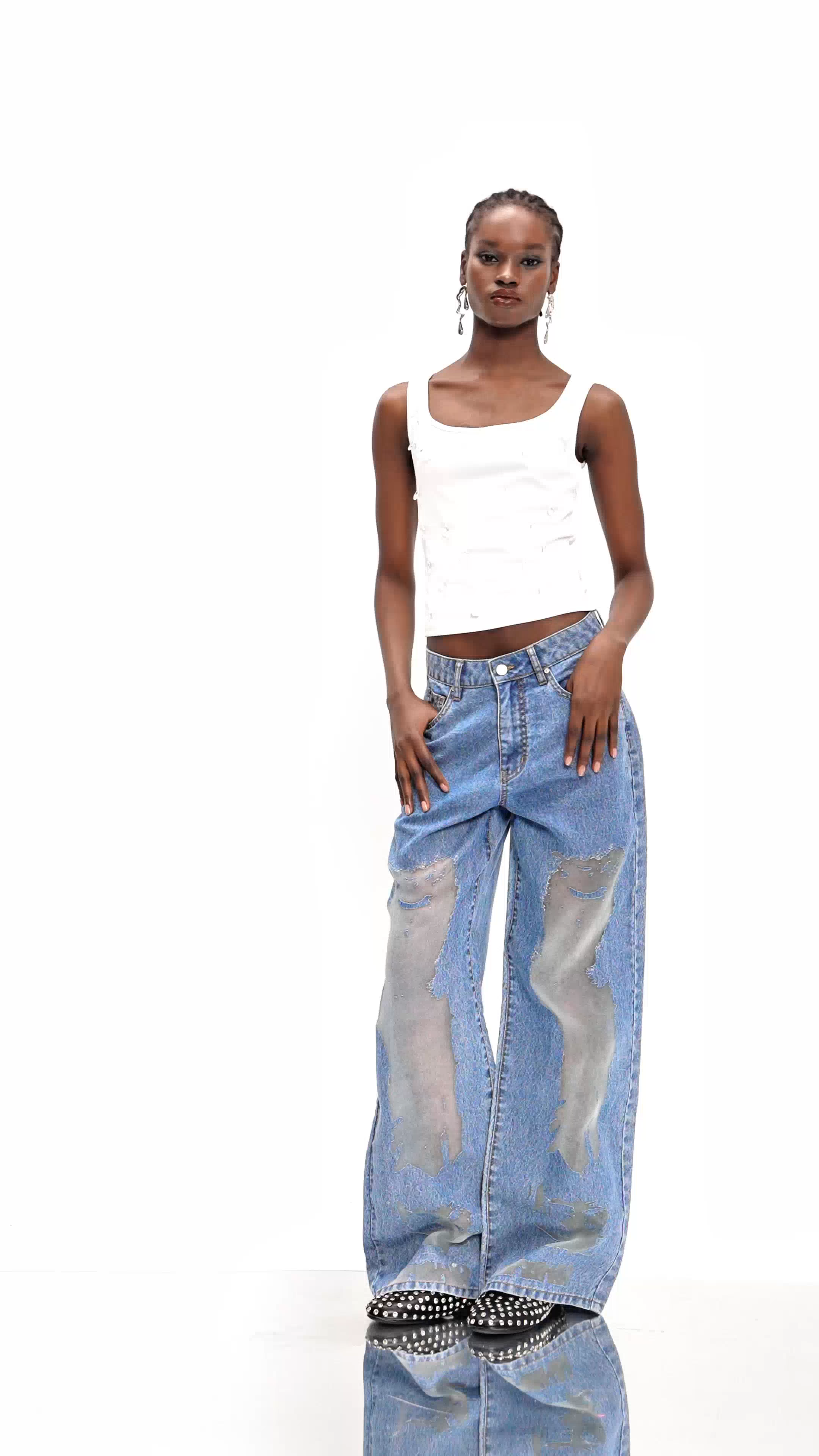 Devaki Mesh Burnout Jeans feature an innovative mesh burnout technique that creates striking visual depth while maintaining the structural integrity of premium denim. The strategic placement of burnout detailing adds contemporary edge to a classic silhouette, offering a sophisticated alternative to traditional distressing. Crafted for those who appreciate refined craftsmanship, these jeans balance statement-making design with everyday wearability. The burnout mesh elements provide subtle texture variation that catches light beautifully, making them versatile enough for both casual and elevated styling.