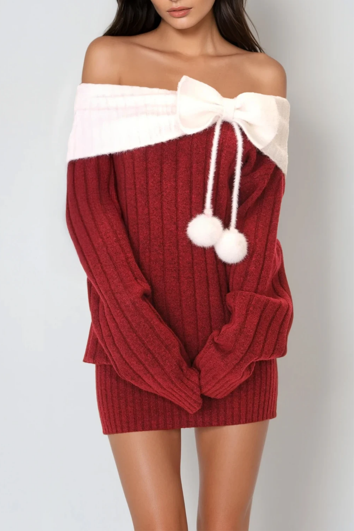 Devi Knit Off Shoulder Bow Mini Dress Crafted from premium knit fabric, this off-shoulder mini dress combines contemporary elegance with refined femininity. The signature bow detail at the neckline creates a sophisticated focal point, while the off-shoulder silhouette flatters the collarbone and shoulders. The fitted knit construction provides gentle shaping through the bodice, transitioning to a relaxed mini length that balances proportion and movement. Versatile enough for evening occasions or elevated casual wear, this piece pairs seamlessly with heels for formal events or sneakers for a modern, laid-back aesthetic. An essential addition to any wardrobe seeking polished, statement-making pieces.