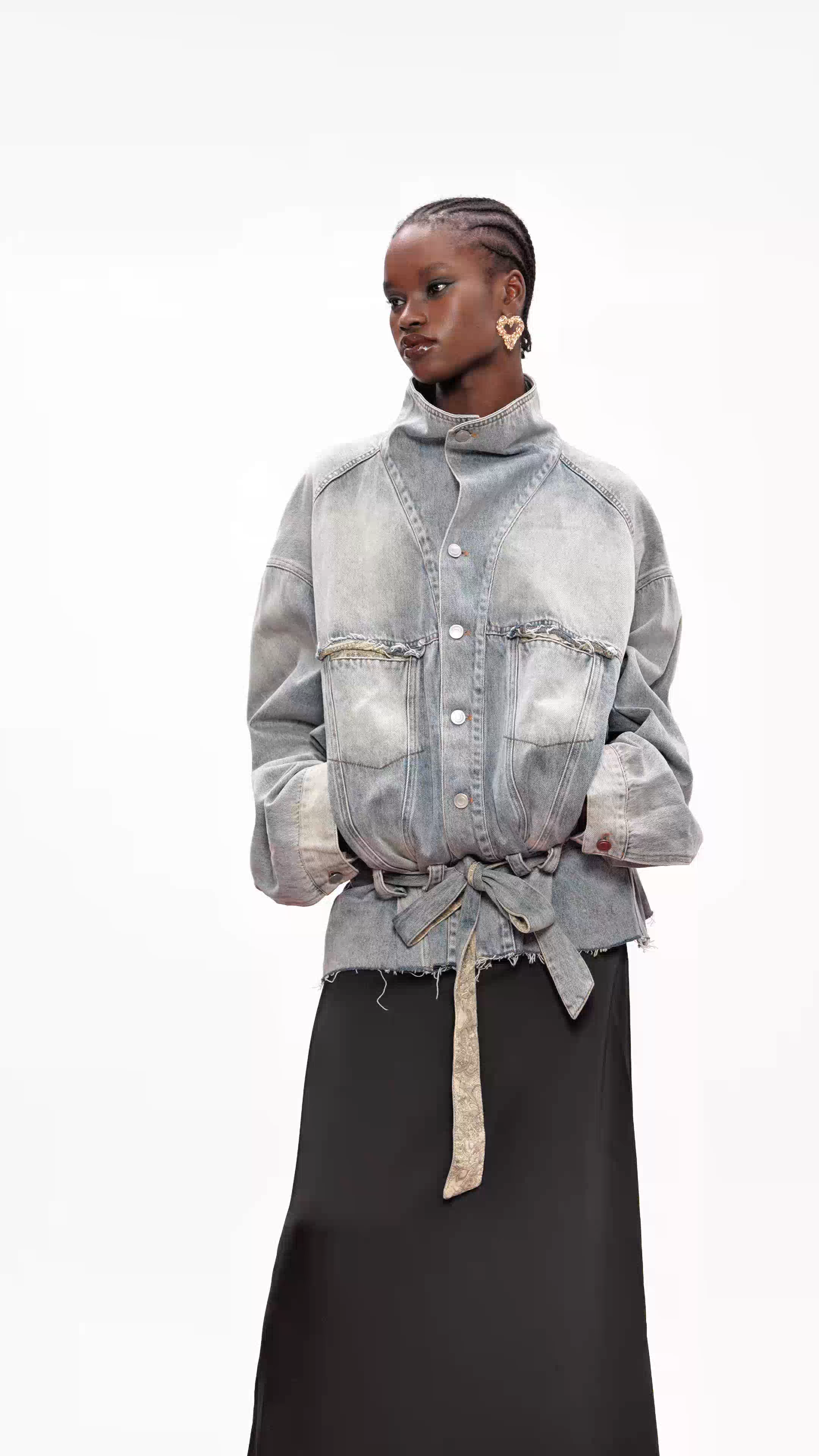 The Dianna Tie Up Bleached Denim Jacket combines vintage-inspired styling with contemporary edge. Crafted from premium denim, the bleached finish delivers a distinctive, worn-in aesthetic that works across seasons. The signature tie-up detailing at the sides offers customizable fit and adds visual interest to the silhouette. Versatile enough for layering over dresses or pairing with basics, this jacket transitions seamlessly from casual weekends to elevated everyday wear. A timeless piece that anchors any wardrobe with understated sophistication.
