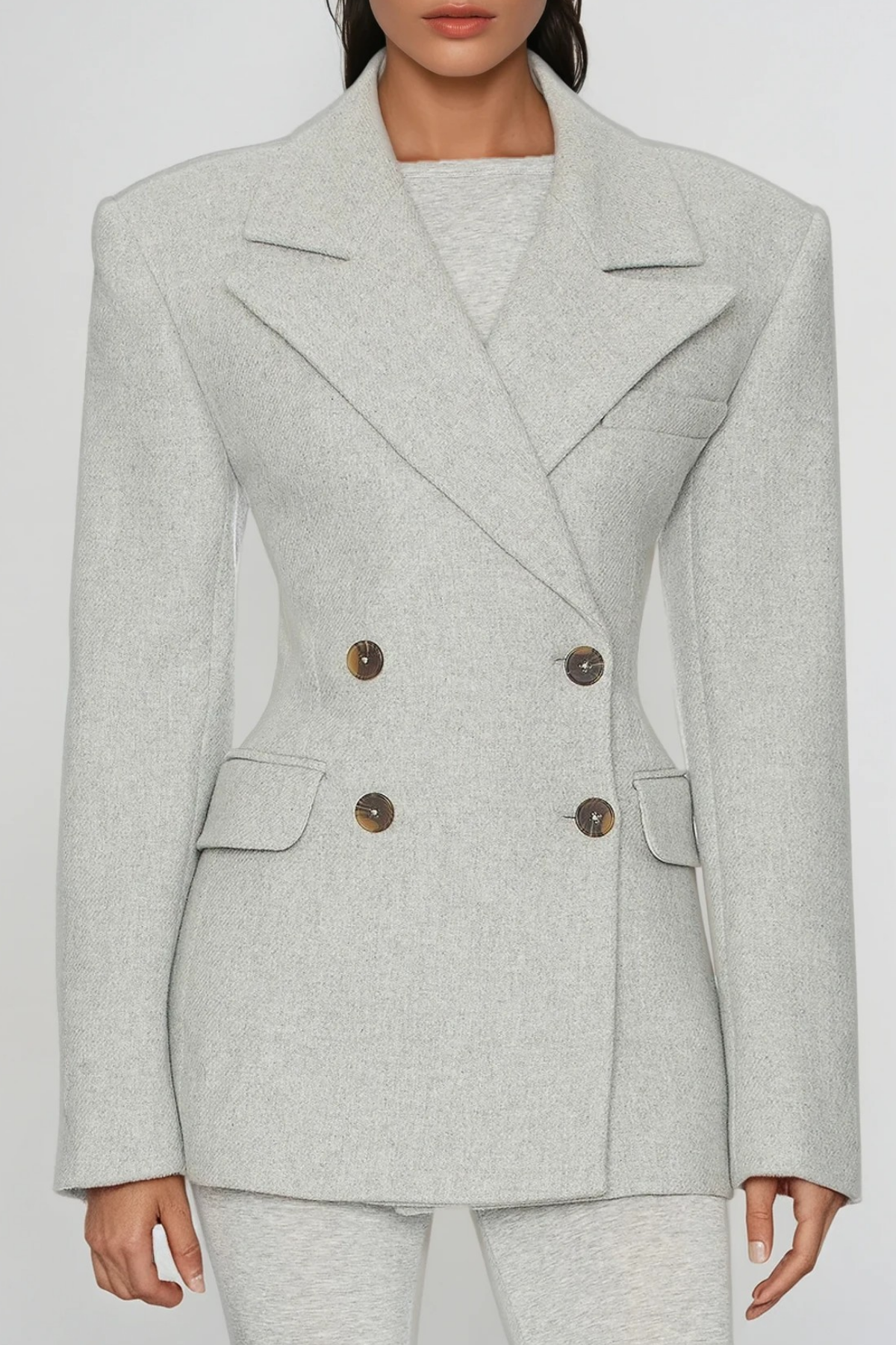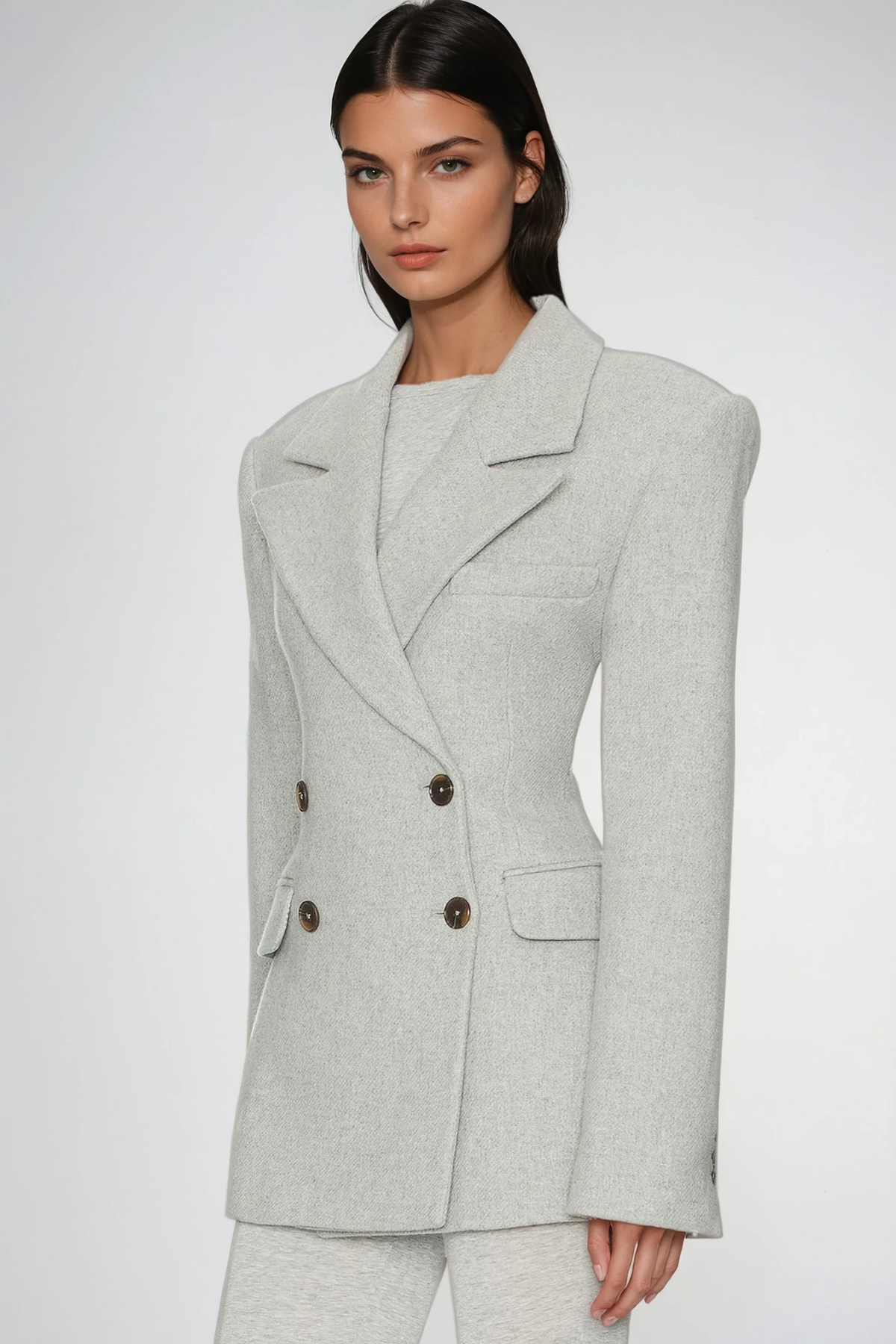 The Dierk Double Breasted Blazer in Grey is a sophisticated tailoring essential that elevates any wardrobe. Crafted with precision, this double-breasted design features clean lines and a refined silhouette that works seamlessly across professional and elevated casual settings. The versatile grey tone pairs effortlessly with neutrals and bold colors alike, making it a reliable foundation piece for building polished outfits. Structured shoulders and expert construction ensure a sharp appearance that commands attention, whether worn as a statement layer or styled with tailored trousers for boardroom-ready sophistication.