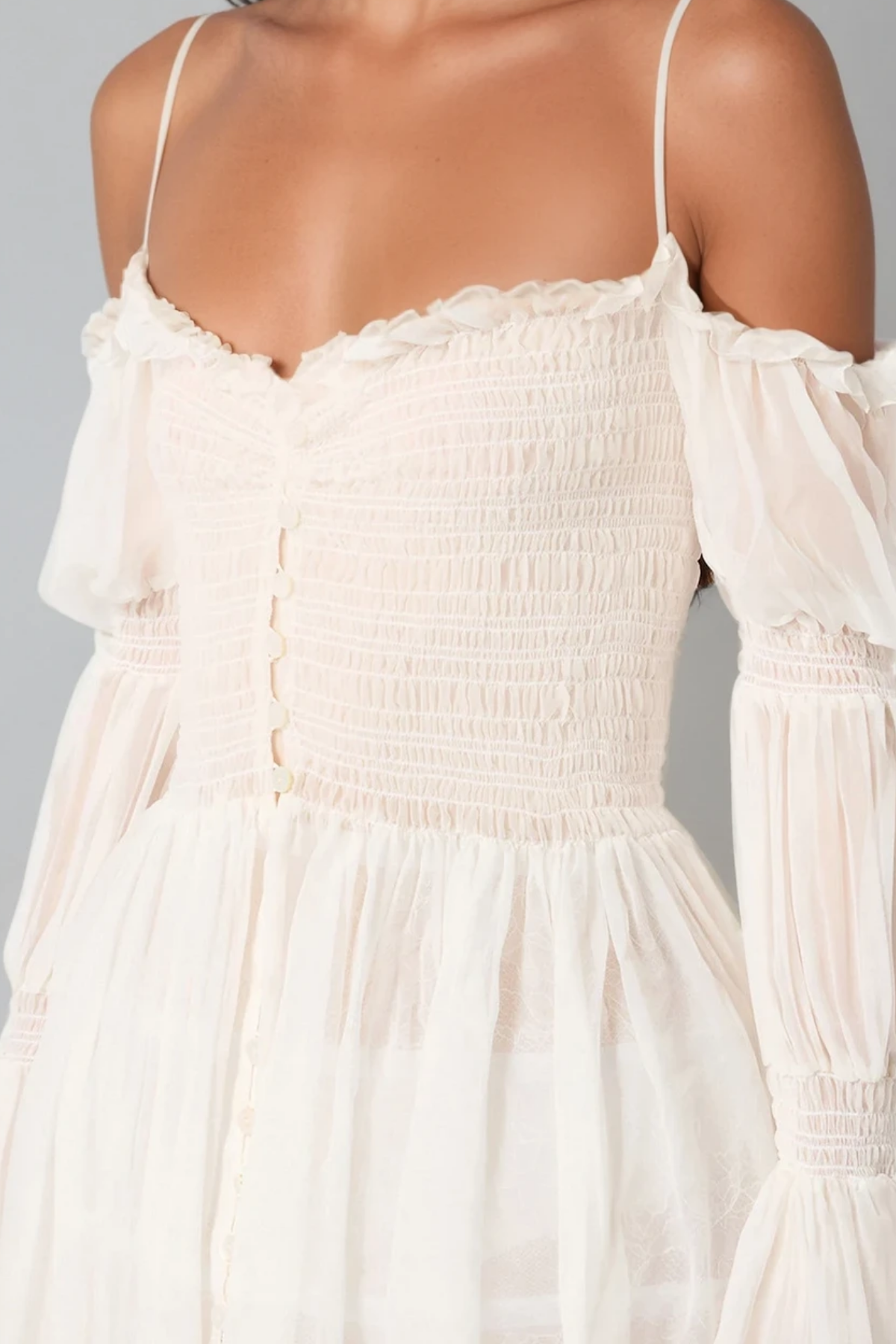 The Diethard Long Sleeve Ruch Mesh Maxi Dress combines sophisticated elegance with contemporary design. Crafted from delicate mesh fabric, this maxi silhouette features strategic ruching that flatters the figure while creating visual interest. The long sleeves provide refined coverage, making it versatile for both evening occasions and upscale casual settings. The flowing length and textured construction deliver a polished, fashion-forward aesthetic that transitions seamlessly from season to season.