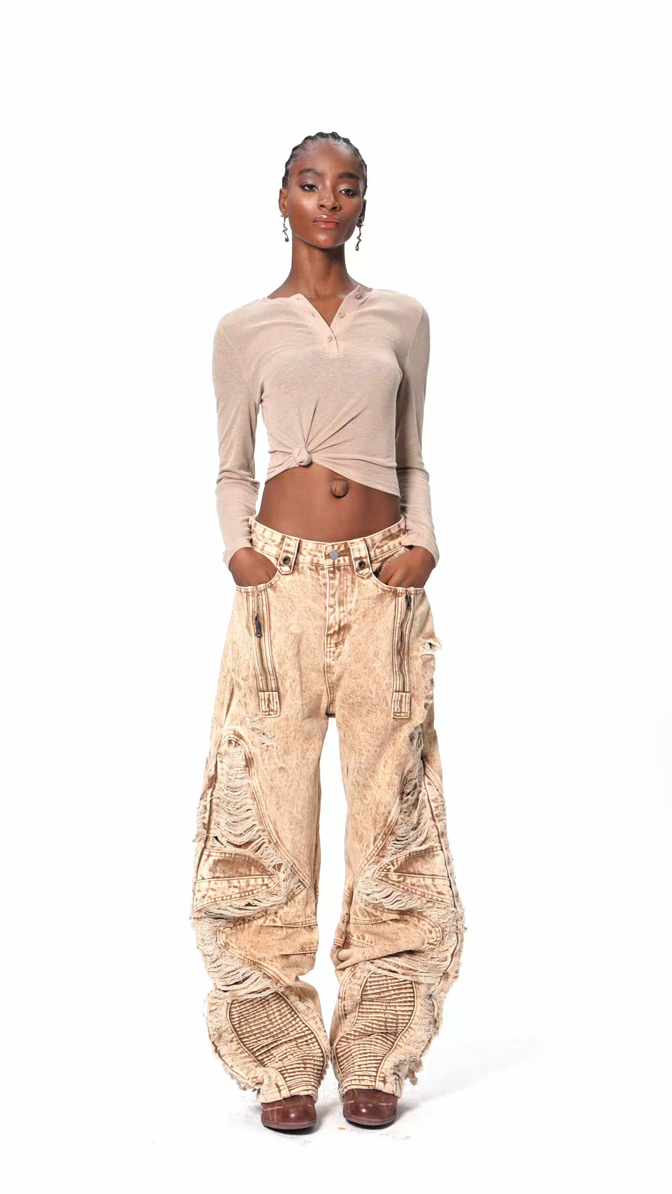 Dimitar Ripped Zipper Jeans combine contemporary edge with refined craftsmanship. Strategic rips across the thighs and knees deliver that coveted distressed aesthetic, while functional side zippers add versatile styling options and easy on-off convenience. Constructed from premium denim with a structured fit, these jeans transition seamlessly from casual streetwear to elevated weekend looks. The contrast zipper detailing elevates the design beyond standard distressed styles, making them a standout piece for those who appreciate intentional, modern tailoring.