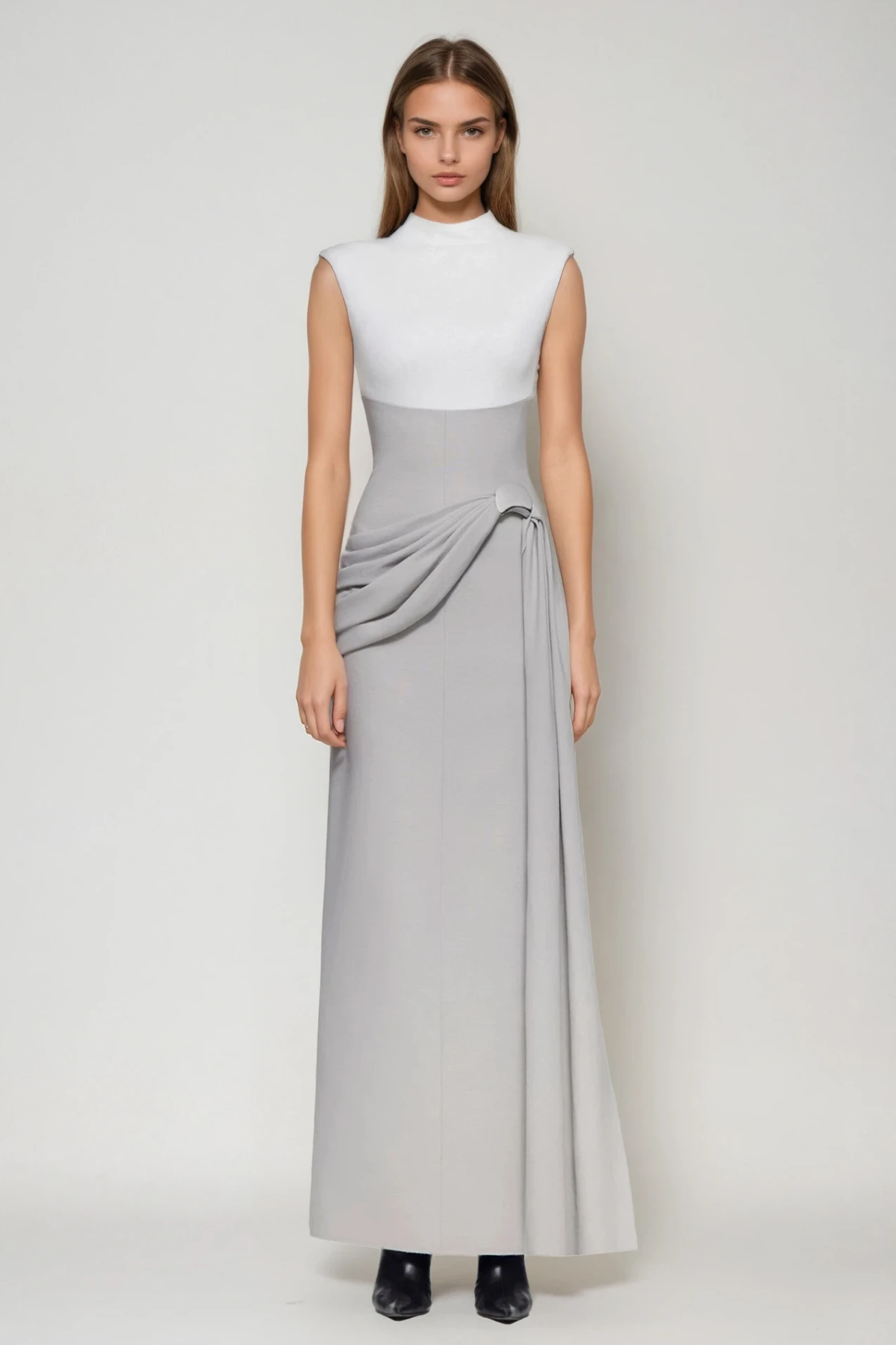 The Dimitrije Sleeveless Colorblock Ruch Maxi Dress combines contemporary design with refined elegance. This floor-length silhouette features a striking colorblock pattern that creates visual interest, while strategic ruching through the bodice provides flattering shaping and dimension. The sleeveless cut offers versatility for layering or standalone wear across seasons. Crafted with attention to detail, this maxi dress transitions seamlessly from daytime occasions to evening events, making it a sophisticated addition to any wardrobe.