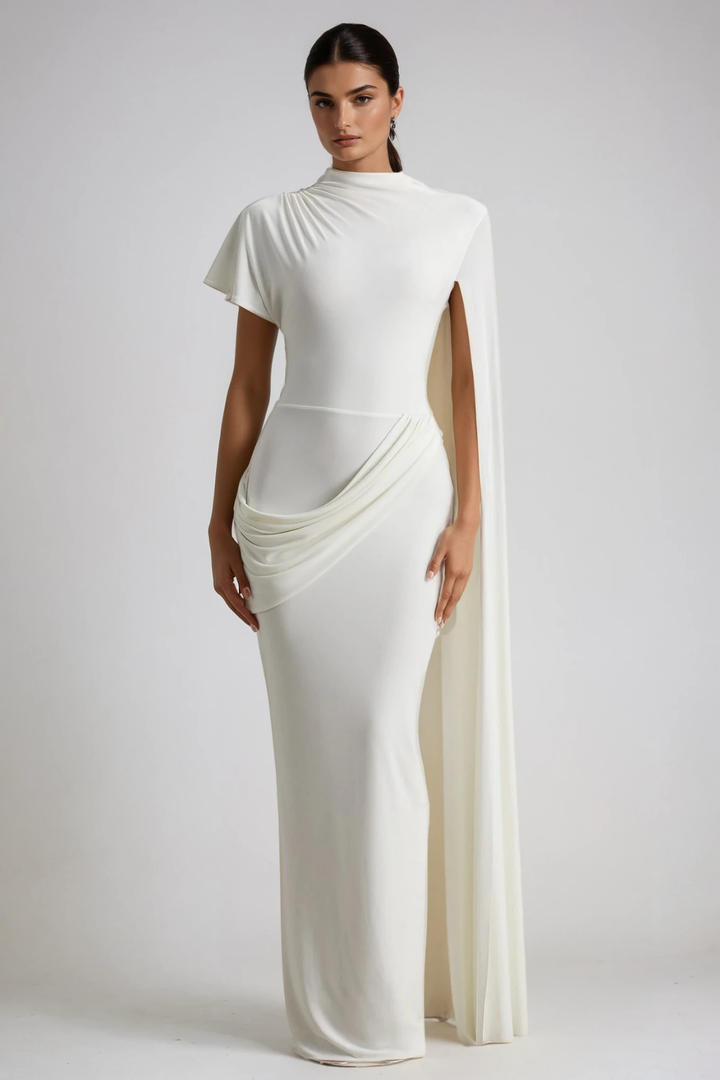 Dimosthenis Bodycon Ruch Fringe Maxi Dress In White