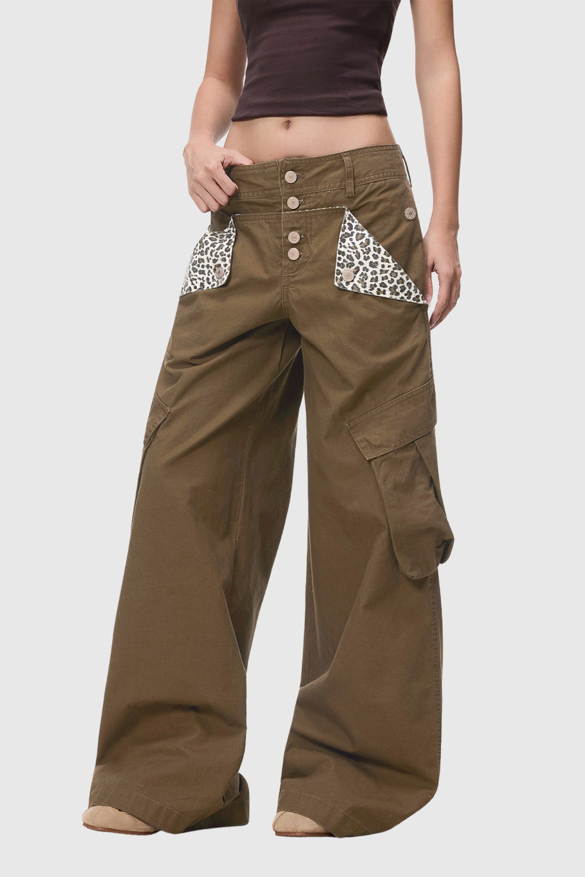 Diocletian's deconstructed cargo jeans merge utilitarian design with bold leopard patterning for a statement piece that transcends conventional denim. The brown colorway provides versatile grounding while strategic distressing and cargo pocket detailing deliver contemporary edge. Crafted with precision tailoring, these jeans balance avant-garde aesthetics with wearable functionality, making them ideal for those who demand both visual impact and practical construction in their wardrobe essentials.