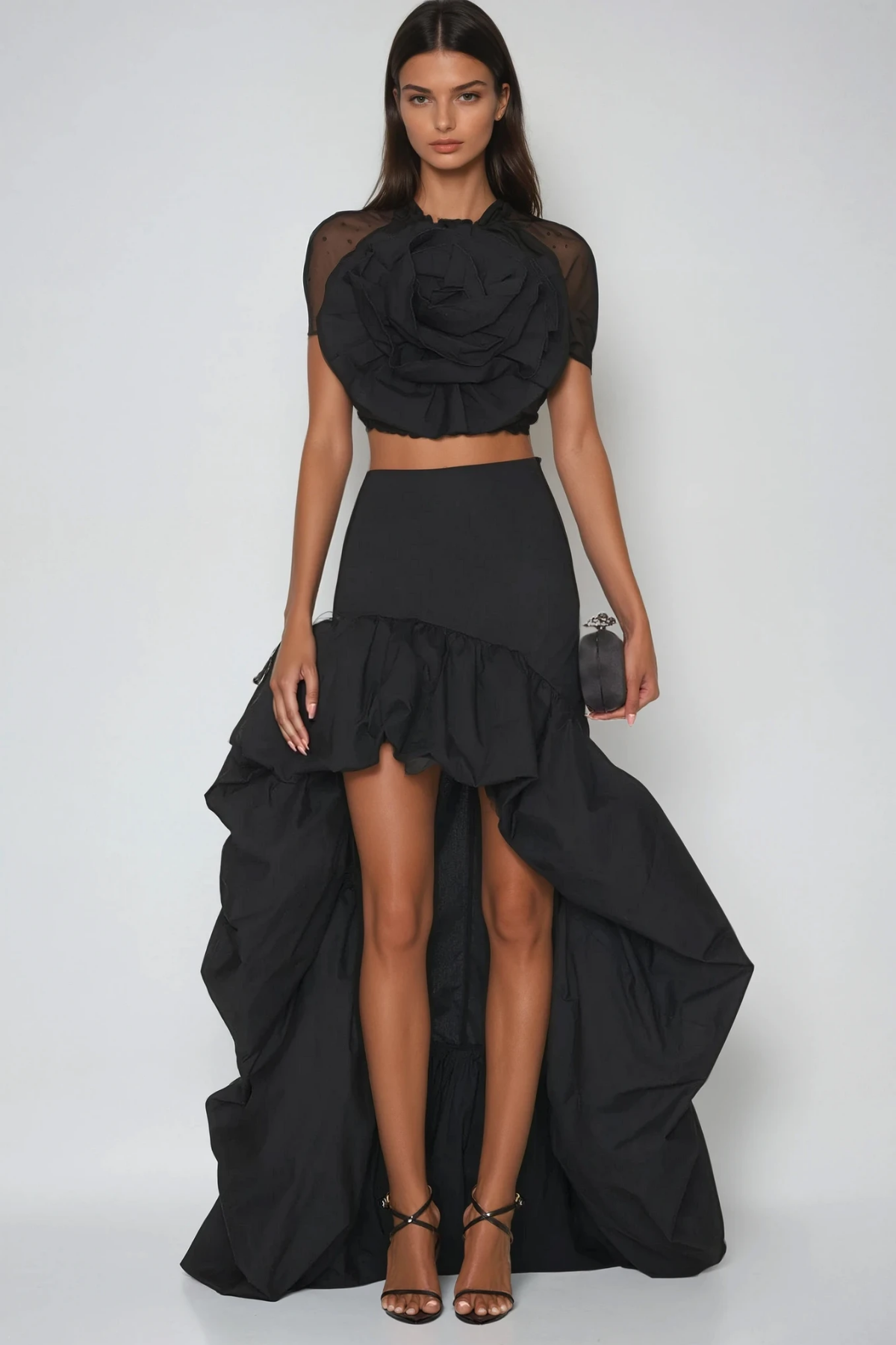 The Dionysius Ruffle High Low Skirt combines contemporary silhouette with refined detailing. This piece features cascading ruffles that create movement and dimension, while the high-low hemline offers versatility for both casual and elevated occasions. The asymmetrical cut provides a modern edge that flatters various body types and allows for creative styling options. Crafted with attention to construction quality, this skirt transitions seamlessly from day to evening wear, making it an essential addition to any thoughtfully curated wardrobe.