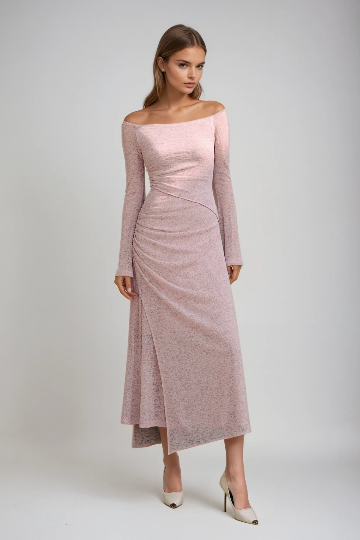 Elevate your evening wardrobe with the Dirke Off Shoulder Bodycon Maxi Dress, a sophisticated silhouette that commands attention. The strategically placed off-shoulder neckline frames the collarbone beautifully while maintaining an air of refined elegance. Its bodycon construction hugs your curves in all the right places, creating a flattering, streamlined profile that transitions seamlessly from cocktail events to upscale dinners. The floor-length maxi cut adds drama and movement, ensuring you make a lasting impression. Crafted for those who understand that true style lies in impeccable tailoring and timeless design.