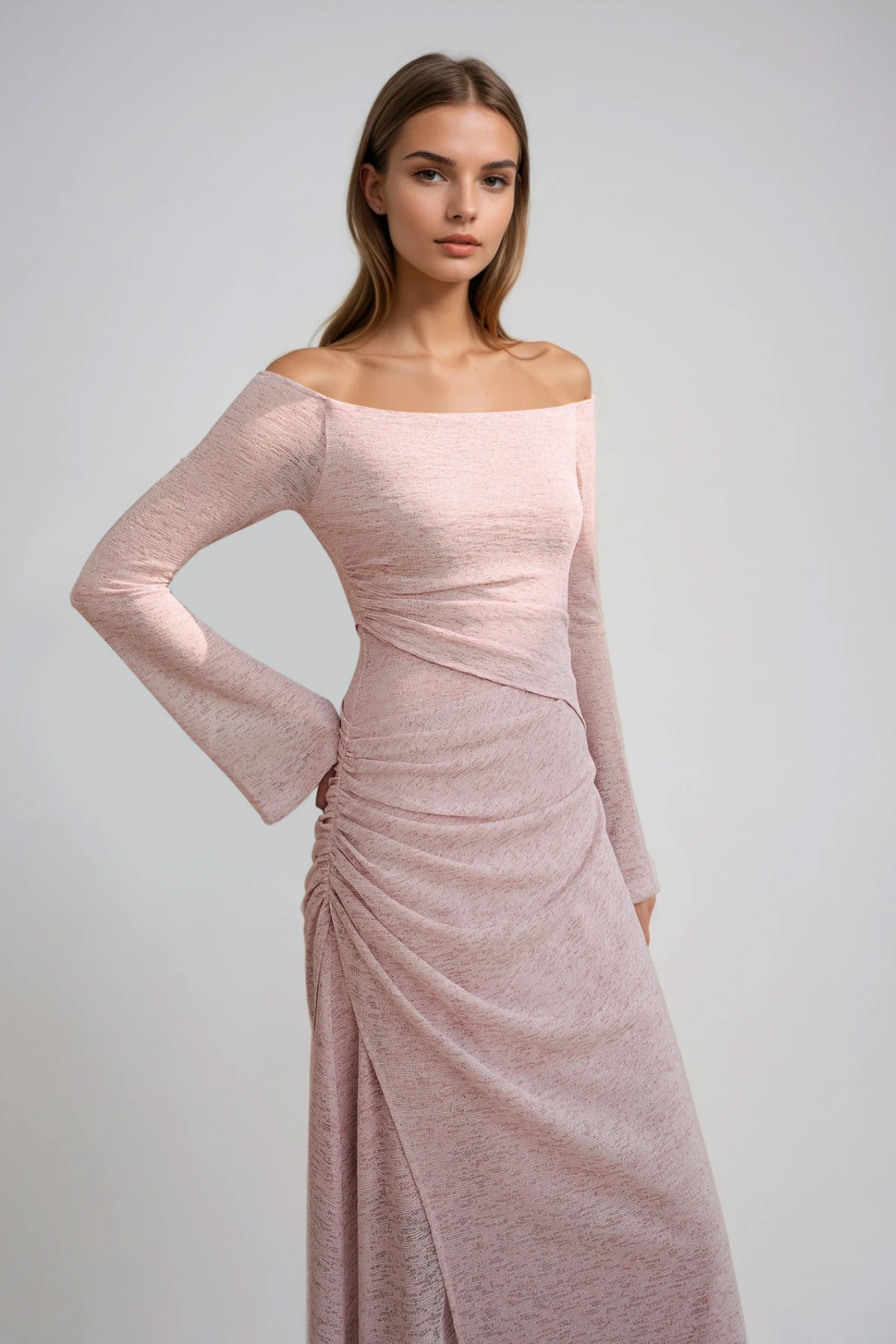Elevate your evening wardrobe with the Dirke Off Shoulder Bodycon Maxi Dress, a sophisticated silhouette that commands attention. The strategically placed off-shoulder neckline frames the collarbone beautifully while maintaining an air of refined elegance. Its bodycon construction hugs your curves in all the right places, creating a flattering, streamlined profile that transitions seamlessly from cocktail events to upscale dinners. The floor-length maxi cut adds drama and movement, ensuring you make a lasting impression. Crafted for those who understand that true style lies in impeccable tailoring and timeless design.