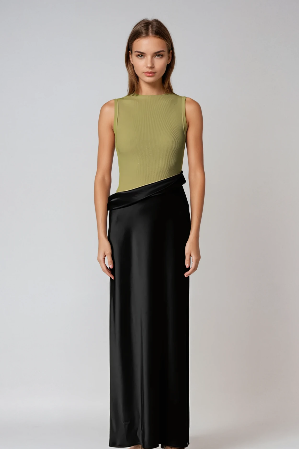 The Ditte Deconstruct Satin Maxi Dress in Green showcases contemporary design through its deconstructed silhouette and luxurious satin fabrication. This statement piece features an asymmetrical cut that creates visual intrigue while maintaining an elegant, floor-length profile. The rich green hue offers versatility for both evening occasions and refined daytime wear. Crafted from premium satin, the dress drapes beautifully to flatter the figure while the deconstructed elements add modern sophistication. Perfect for those seeking a distinctive dress that balances avant-garde styling with wearable elegance.