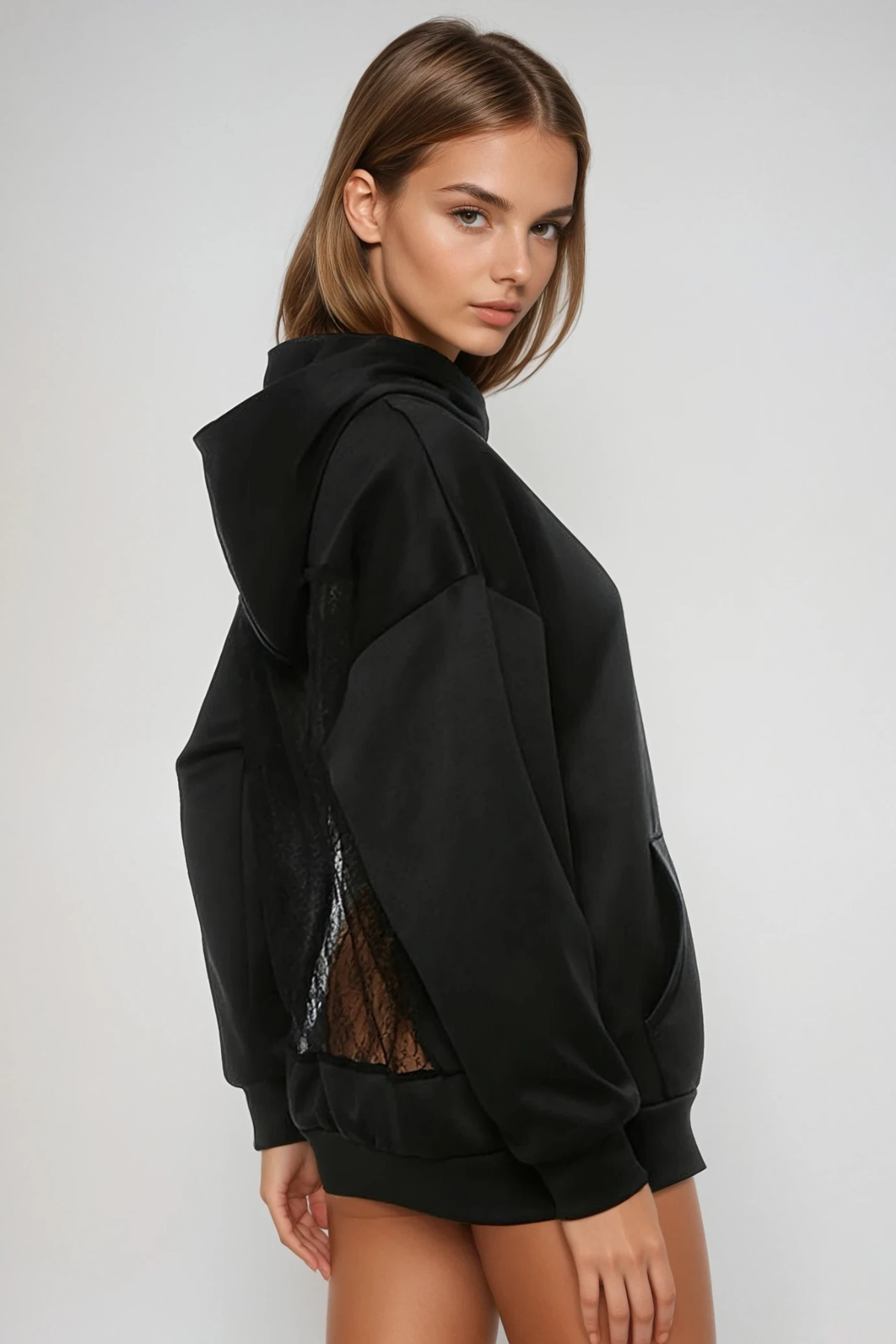 Divna Hooded Lace Top Elevate your wardrobe with this sophisticated hooded lace top, where delicate craftsmanship meets contemporary design. The intricate lace detailing provides an elegant aesthetic, while the integrated hood adds versatility for layering and casual styling. Perfect for transitional seasons, this piece transitions seamlessly from day to evening wear. The refined construction ensures durability without compromising on the ethereal quality lace is known for. An essential addition for those who appreciate quality fabrics and timeless silhouettes with modern appeal.