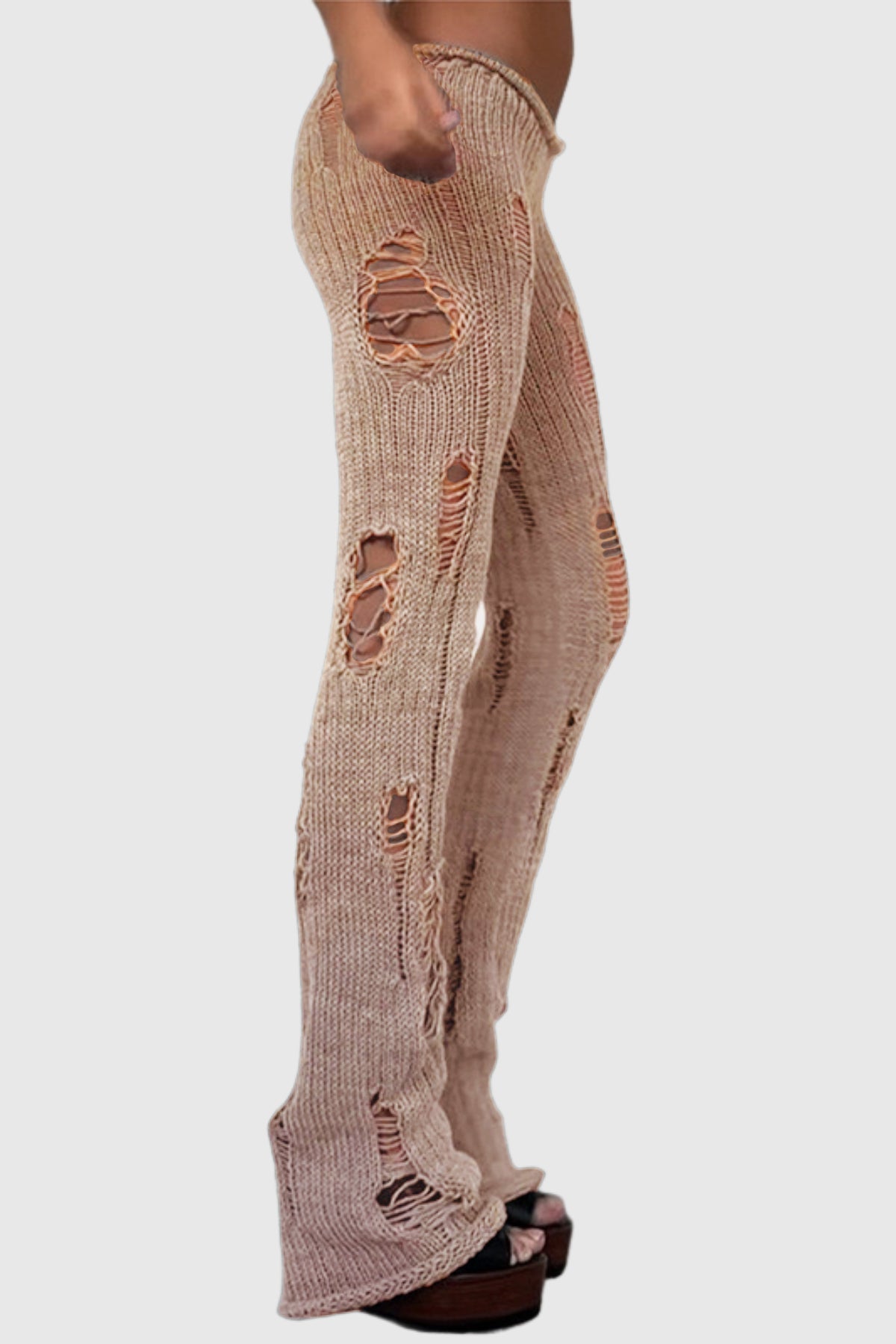 Djedefre Ripped Knit Pants In Camel These Djedefre knit pants showcase a sophisticated camel colorway that transitions seamlessly from day to evening. The strategically placed rips create visual interest while the soft knit fabric ensures all-day wearability and flexibility. The neutral tone pairs effortlessly with both neutral and bold pieces, making these pants a versatile foundation for any wardrobe. Engineered for comfort without sacrificing contemporary aesthetics, they're an essential addition to modern dressing.