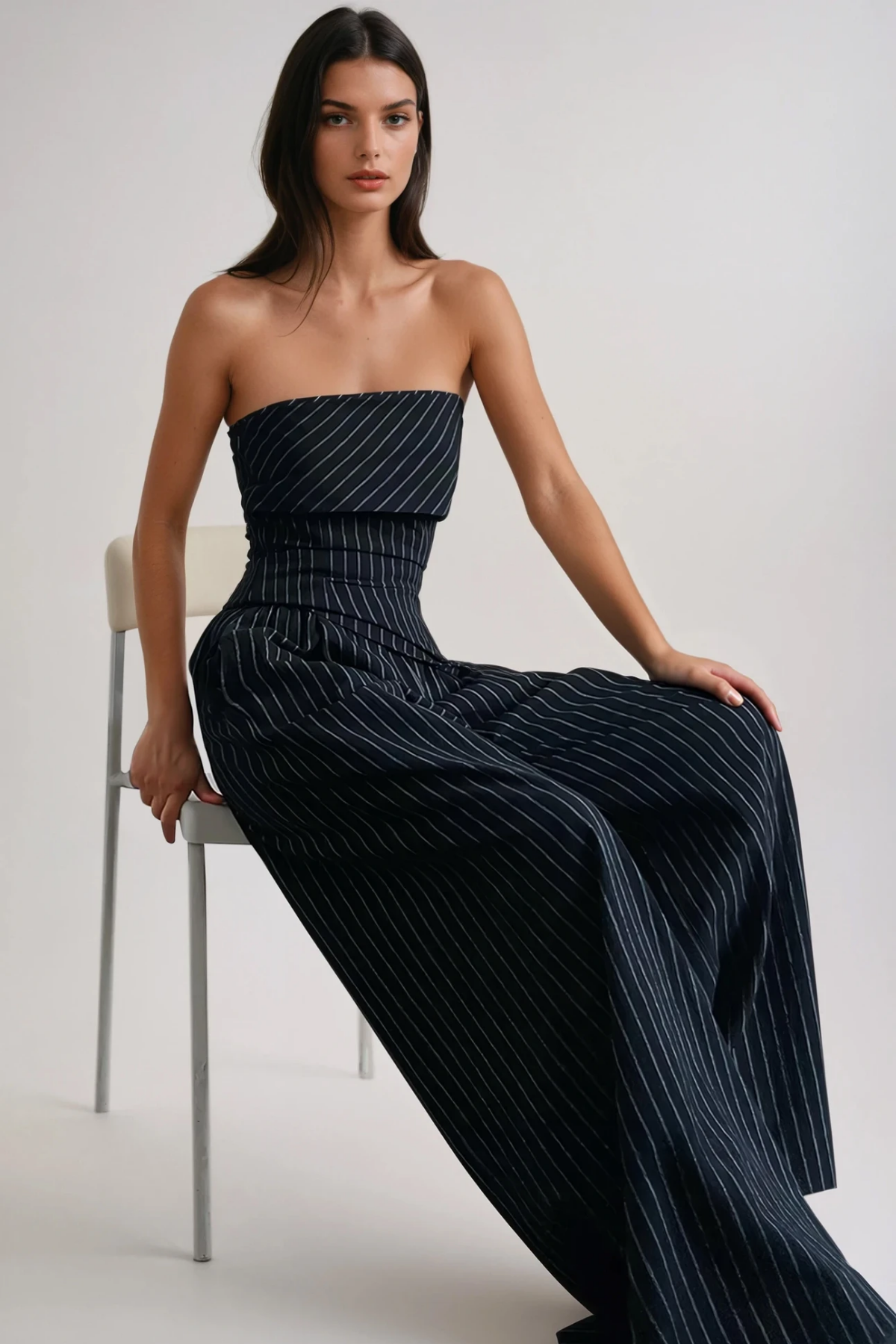 Elevate your wardrobe with the Dmitry Strapless Stripe Pants Set, a sophisticated two-piece ensemble designed for the modern woman. The strapless silhouette offers a sleek, contemporary look, while the refined stripe pattern adds visual interest and versatility. Crafted with precision tailoring, this set transitions seamlessly from professional settings to evening occasions. The coordinated pairing ensures effortless styling, allowing you to achieve a polished appearance with minimal effort. Perfect for those who appreciate quality construction and timeless design.