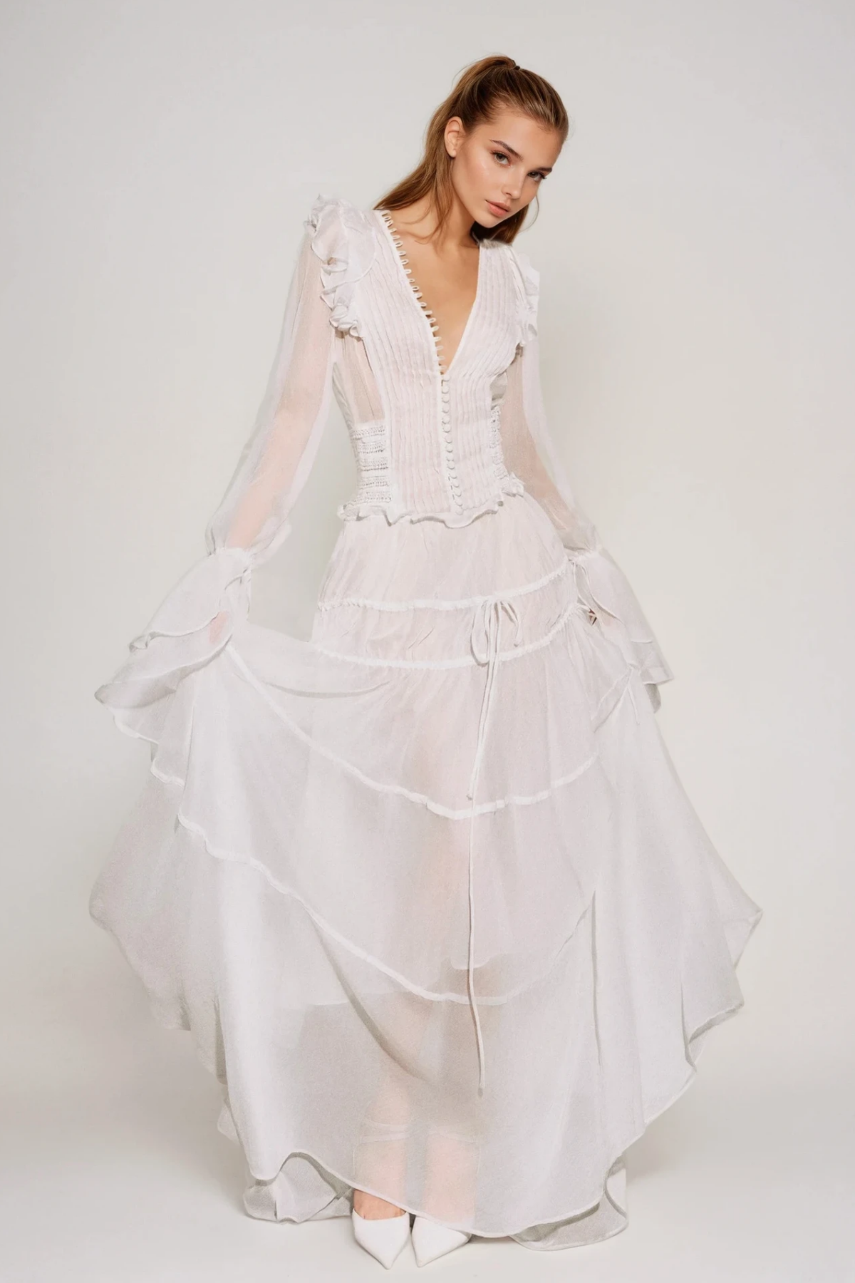 Dobrila Plunge Mesh Maxi Dress The Dobrila Plunge Mesh Maxi Dress combines contemporary elegance with refined sophistication. Featuring a dramatic plunge neckline and sheer mesh construction, this floor-length silhouette delivers a striking yet refined aesthetic. The flowing maxi length creates graceful movement, while the mesh detailing adds textural interest and visual depth. Ideal for evening events, upscale occasions, or fashion-forward styling, this dress makes a confident statement. The plunge design flatters various body types, and the mesh fabric provides breathability without compromising on impact. A versatile piece that transitions seamlessly from formal gatherings to elevated casual settings.