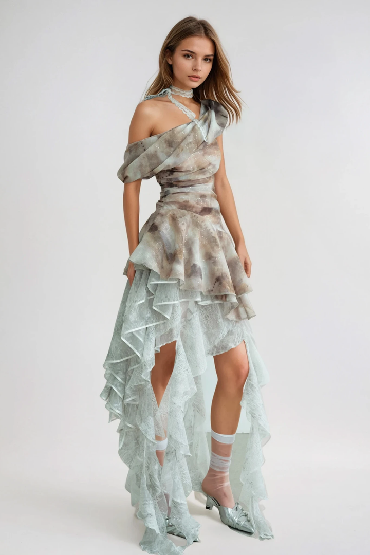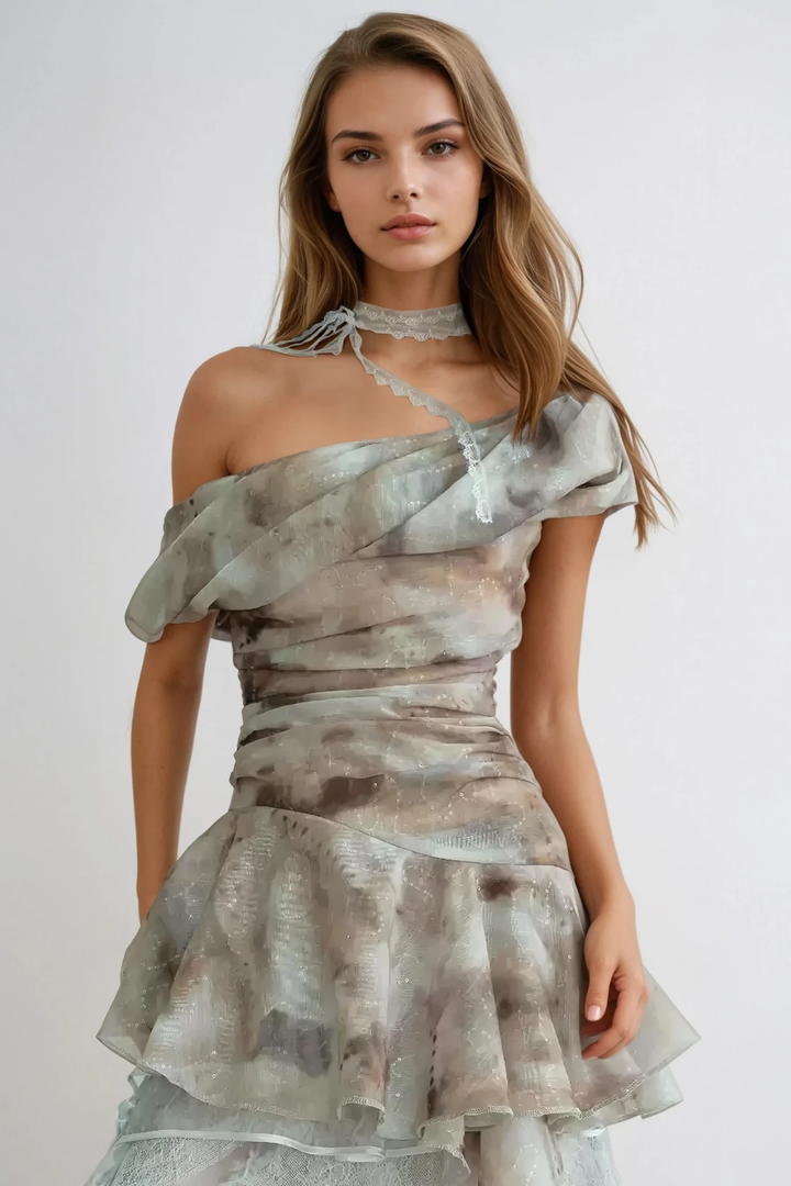 Dobroslav One Shoulder Tie Dye Ruffle Top