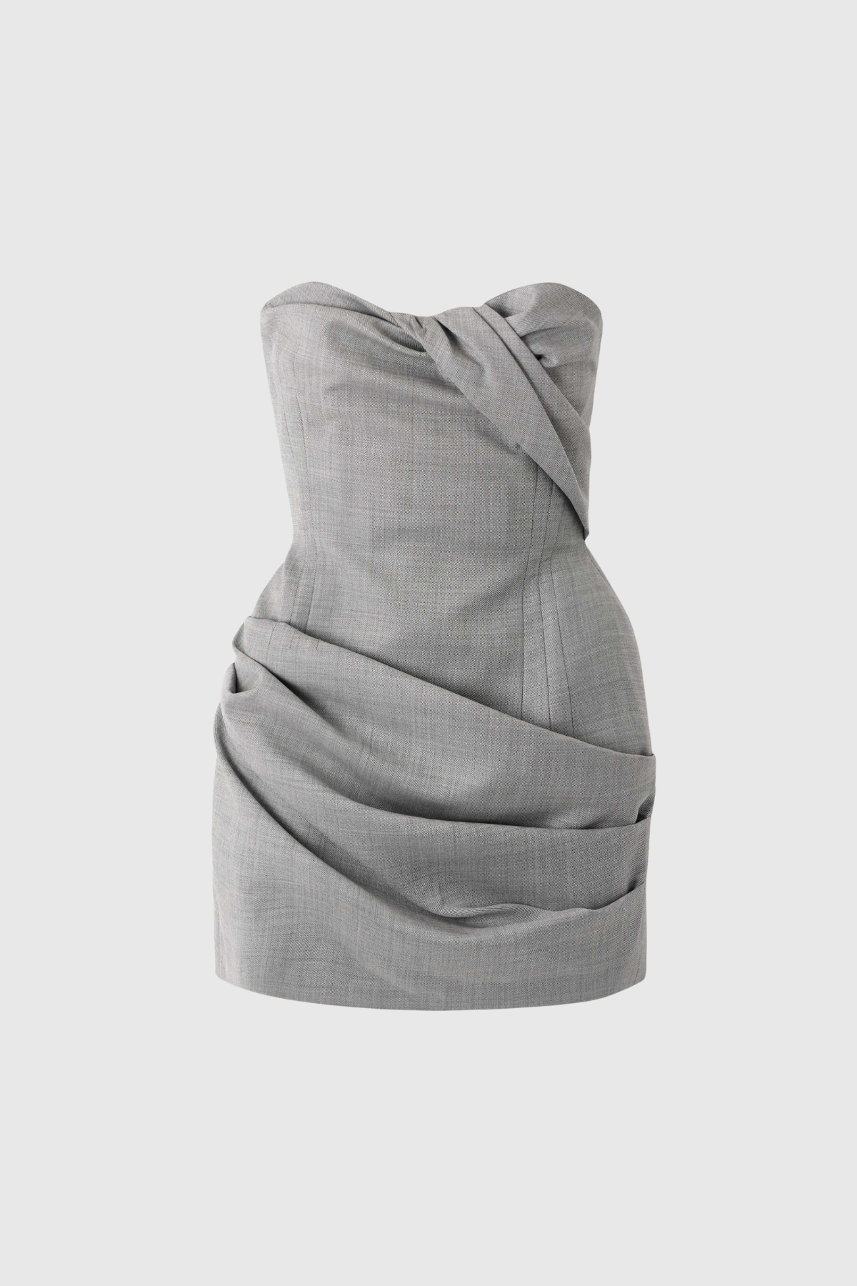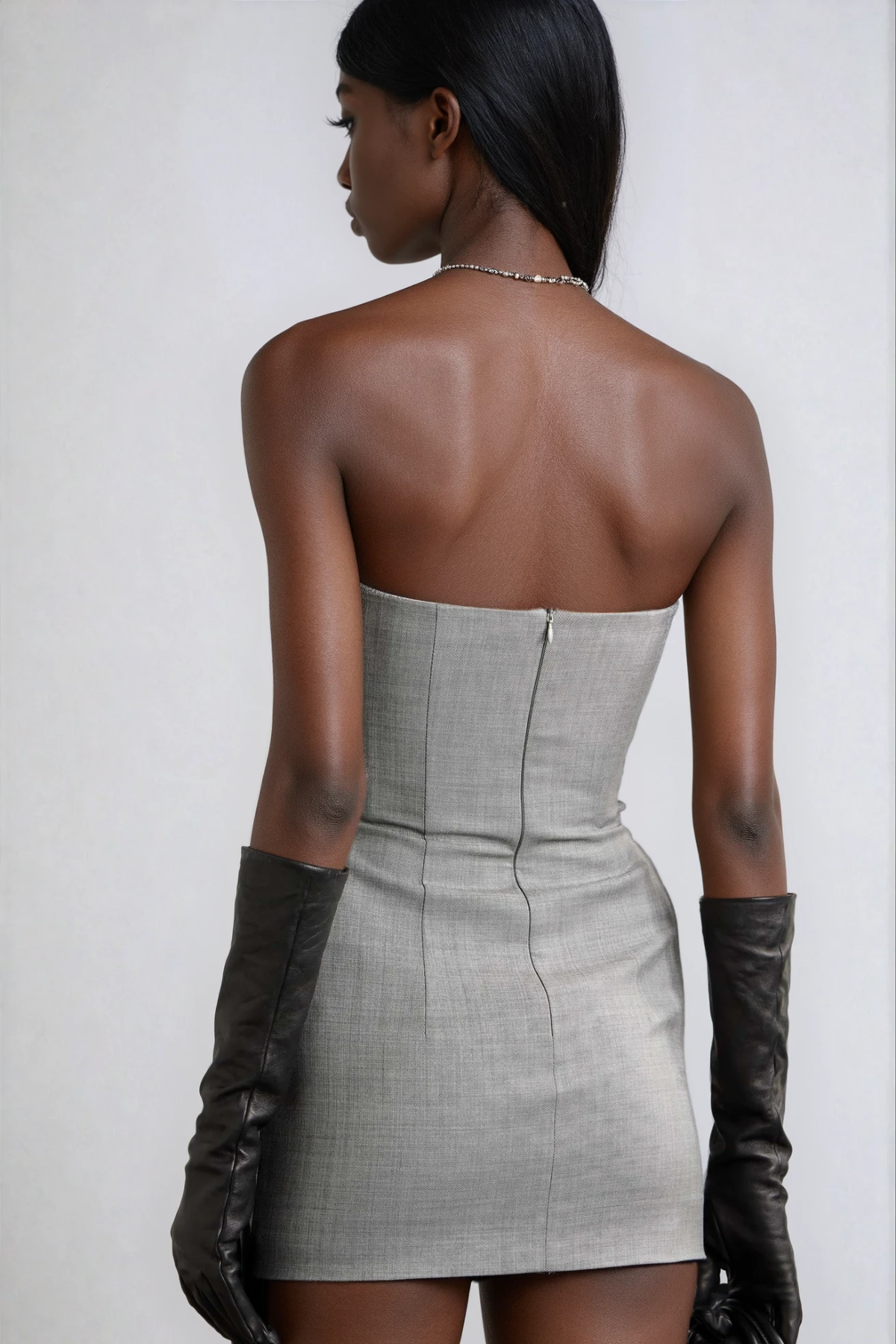 The Donatas Strapless Ruch Mini Dress in Grey is a sophisticated piece that combines contemporary design with timeless elegance. Featuring a strapless silhouette and strategically placed ruching, this dress creates a flattering, sculpted effect that enhances your natural curves. The versatile grey tone pairs effortlessly with any wardrobe, making it ideal for everything from evening events to upscale casual occasions. Crafted with attention to detail, this mini dress delivers polished style with modern edge.