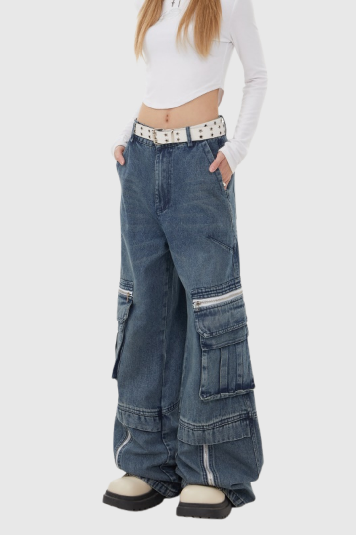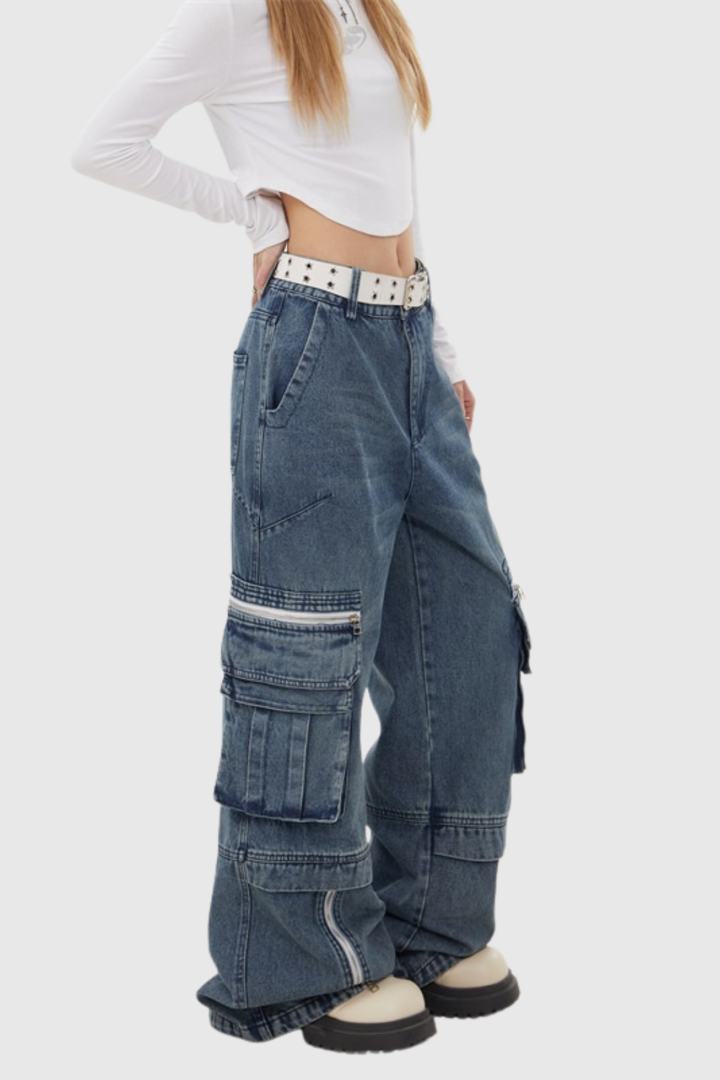 Donatienne Zipper Cargo Jeans combine utilitarian design with contemporary style. Featuring strategically placed cargo pockets and a functional zipper system, these jeans deliver practical storage without compromising on aesthetics. Crafted from durable denim, they offer the structure and longevity expected from quality workwear-inspired fashion. The cargo silhouette provides a relaxed fit ideal for casual wear, while the expert construction ensures these jeans withstand regular use. Perfect for those seeking functional fashion that balances utility with modern appeal.