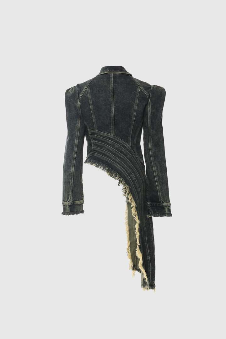 Donggeun's asymmetric deconstruct denim top exemplifies contemporary design through strategic fabric manipulation and unconventional silhouetting. The deconstructed elements—raw seams, selective distressing, and irregular hemlines—create visual interest while maintaining the structural integrity of premium denim. The asymmetrical cut offers a modern alternative to traditional tops, allowing for versatile styling across casual and elevated wardrobes. This piece demonstrates technical craftsmanship in its intentional construction, where each element serves both aesthetic and functional purposes. Ideal for those seeking distinctive pieces that challenge conventional fashion norms.