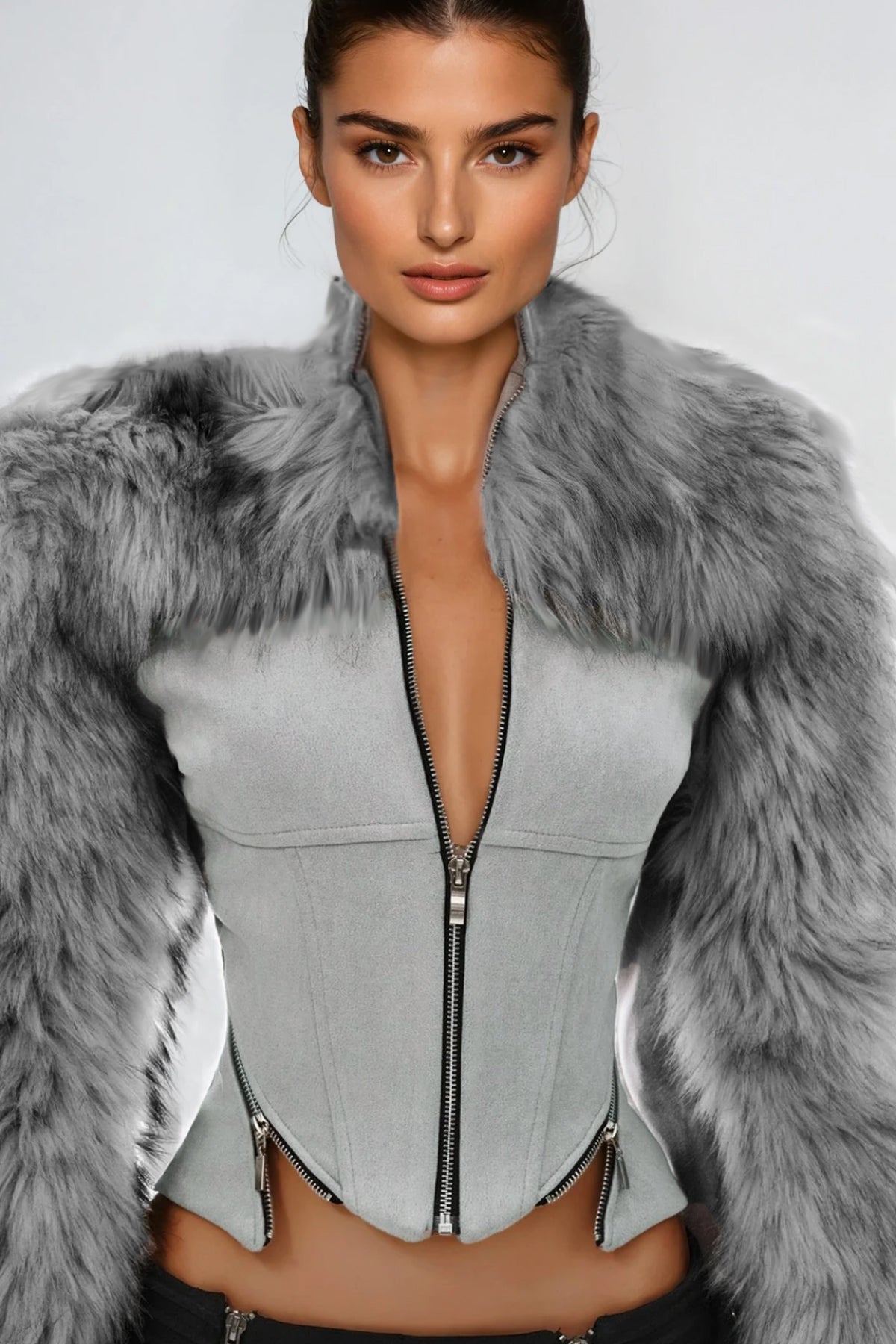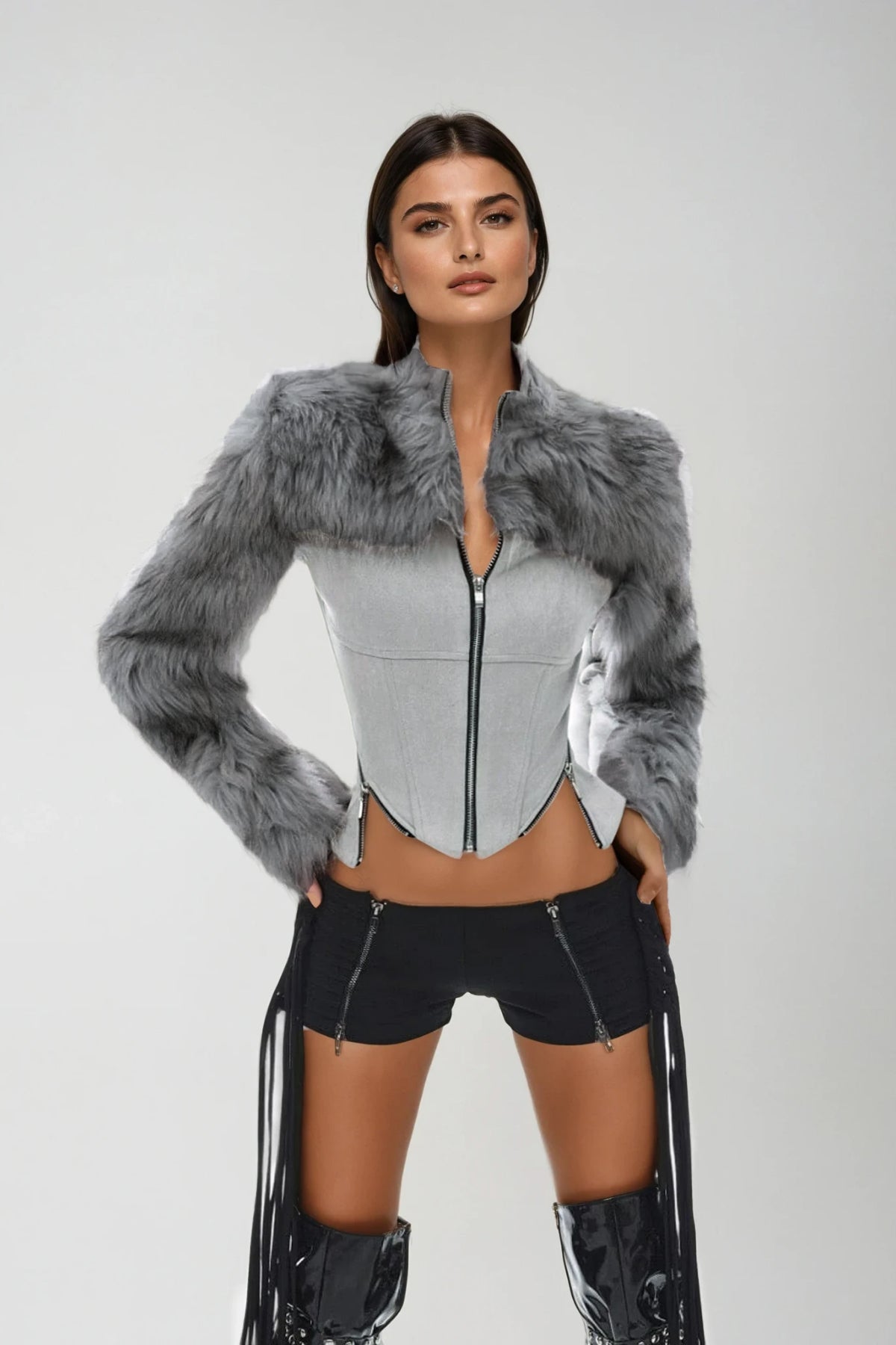 Donghyun Deconstruct Faux Fur Jacket This architectural piece reimagines faux fur through intentional deconstruction. Asymmetrical paneling and strategic cutouts create visual movement while maintaining the luxurious warmth of premium synthetic fur. The deconstructed silhouette offers a contemporary edge—perfect for those who appreciate avant-garde design without compromising on comfort. Layer it over minimalist basics or pair with tailored pieces to let the jacket's innovative construction take center stage. A statement outerwear essential for the discerning dresser.