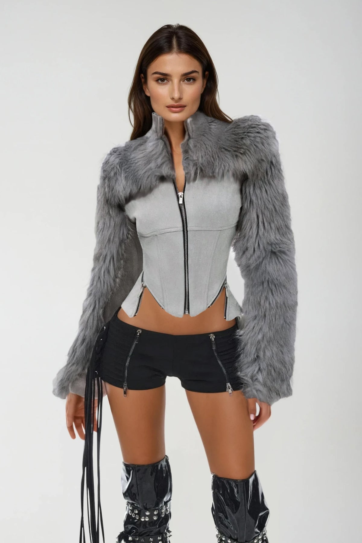 Donghyun Deconstruct Faux Fur Jacket This architectural piece reimagines faux fur through intentional deconstruction. Asymmetrical paneling and strategic cutouts create visual movement while maintaining the luxurious warmth of premium synthetic fur. The deconstructed silhouette offers a contemporary edge—perfect for those who appreciate avant-garde design without compromising on comfort. Layer it over minimalist basics or pair with tailored pieces to let the jacket's innovative construction take center stage. A statement outerwear essential for the discerning dresser.