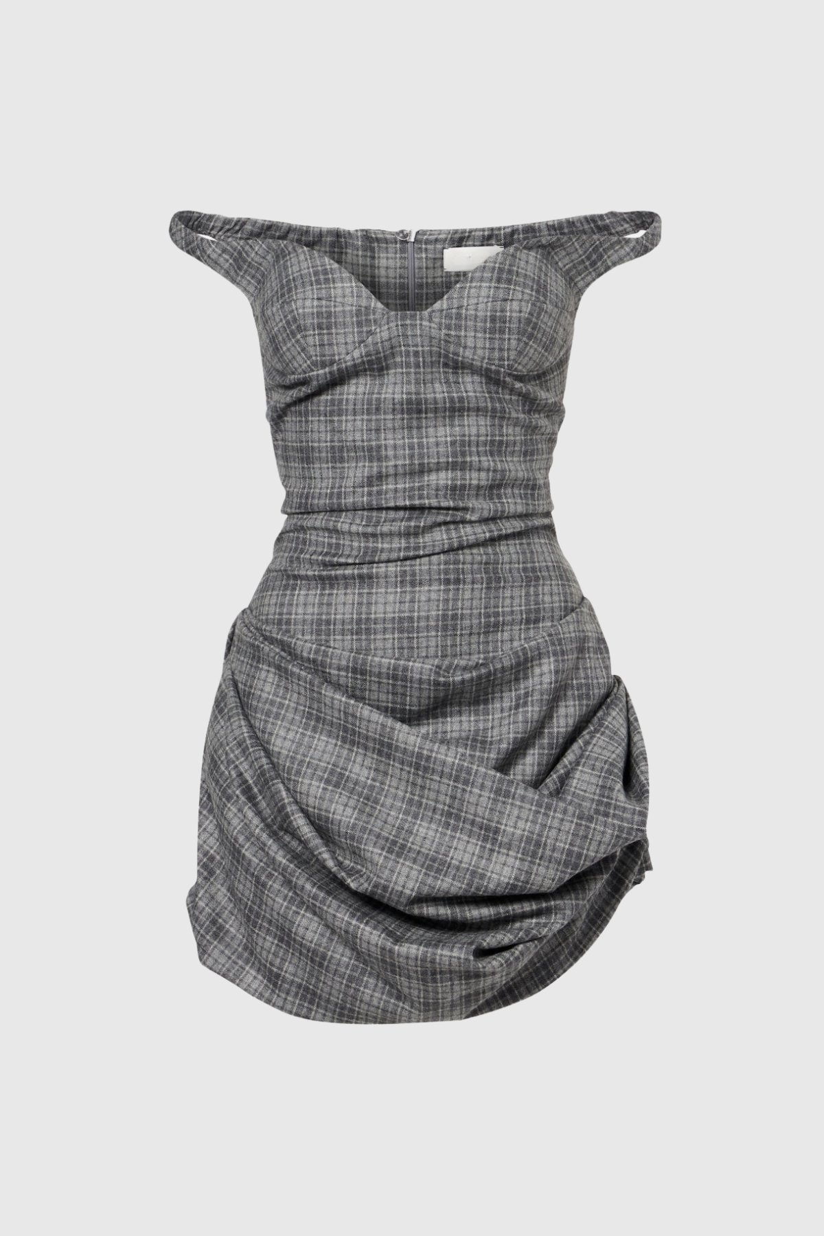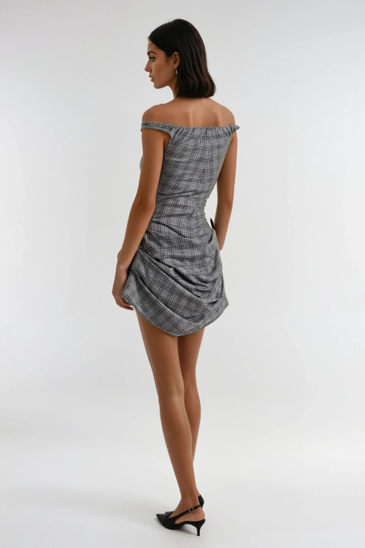 The Doreen Off Shoulder Grid Mini Dress combines contemporary design with versatile styling. This piece features a flattering off-shoulder neckline that creates an elegant silhouette, while the grid pattern adds visual interest and texture. The mini length offers a modern, youthful aesthetic perfect for casual outings or elevated evening occasions. The off-shoulder cut provides a sophisticated touch that works seamlessly from day to night, making it an essential addition to any wardrobe seeking refined, on-trend pieces.