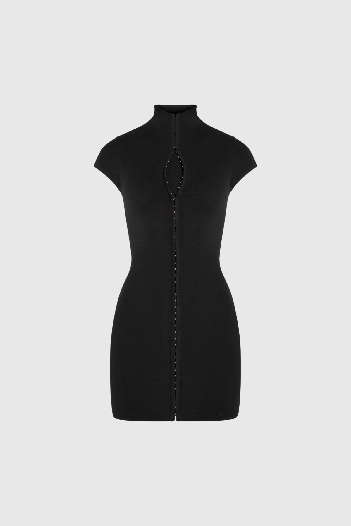 Engineered for a sculpted silhouette, the Dobromila Bodycon Hook Mini Dress combines precision tailoring with contemporary design. The strategic hook closures provide adjustable fit and visual interest, while the bodycon construction flatters your natural curves. Cut to mini length for versatility, this piece transitions seamlessly from evening events to upscale casual occasions. Crafted with attention to detail, it's a wardrobe essential for those who appreciate refined, form-fitting style.