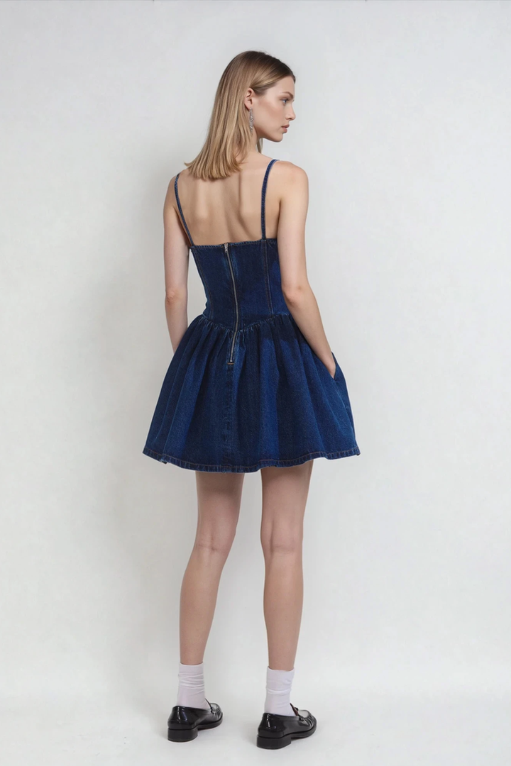 Crafted from premium denim, this mini dress features delicate ruffle detailing and intricate embellishments that elevate everyday wear into statement-worthy style. The structured silhouette flatters the figure while the ruffled accents add movement and visual interest. Perfect for transitioning from day to night, this piece pairs effortlessly with sneakers for casual outings or heels for evening occasions. The durable denim construction ensures lasting quality, making it a versatile addition to any contemporary wardrobe.