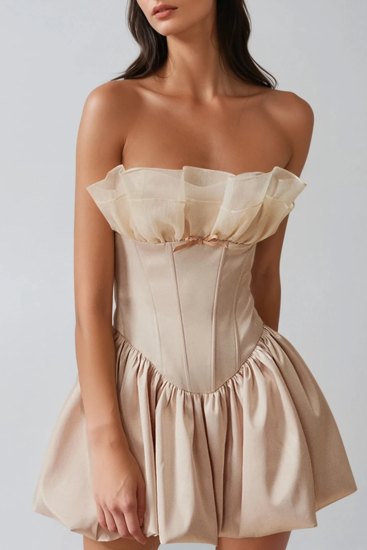 The Dren Strapless Corset Bubble Mini Dress combines structured tailoring with contemporary silhouette design. The strapless corset bodice provides architectural support and definition, while the bubble hem creates dimensional volume and movement. This piece transitions seamlessly from evening occasions to upscale casual settings. The corset construction ensures a refined fit, and the mini length offers modern proportions. Crafted for those seeking statement-making pieces that balance sophistication with bold design elements.