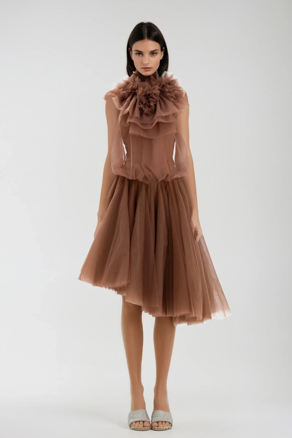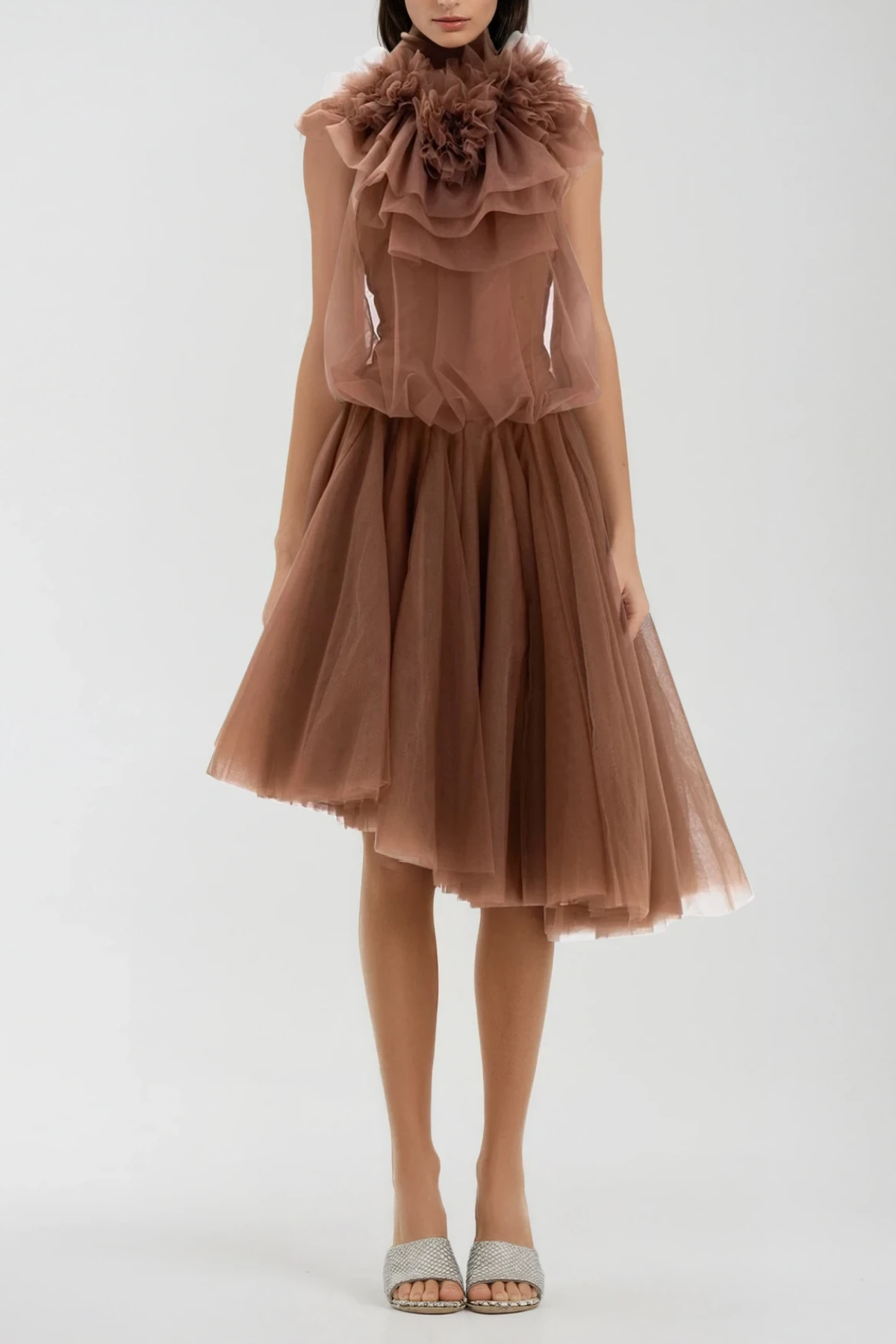 Drustan Flower Asymmetric Mesh Midi Dress